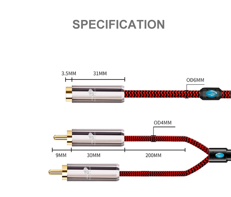 Comprar Mini Jack 3,5 hembra a doble RCA macho Cable de Audio de preímio para AMP Soundbox Decorder 1/8 "Cable de blindaje OFC 1M 2M 3M 5M 8M 10M