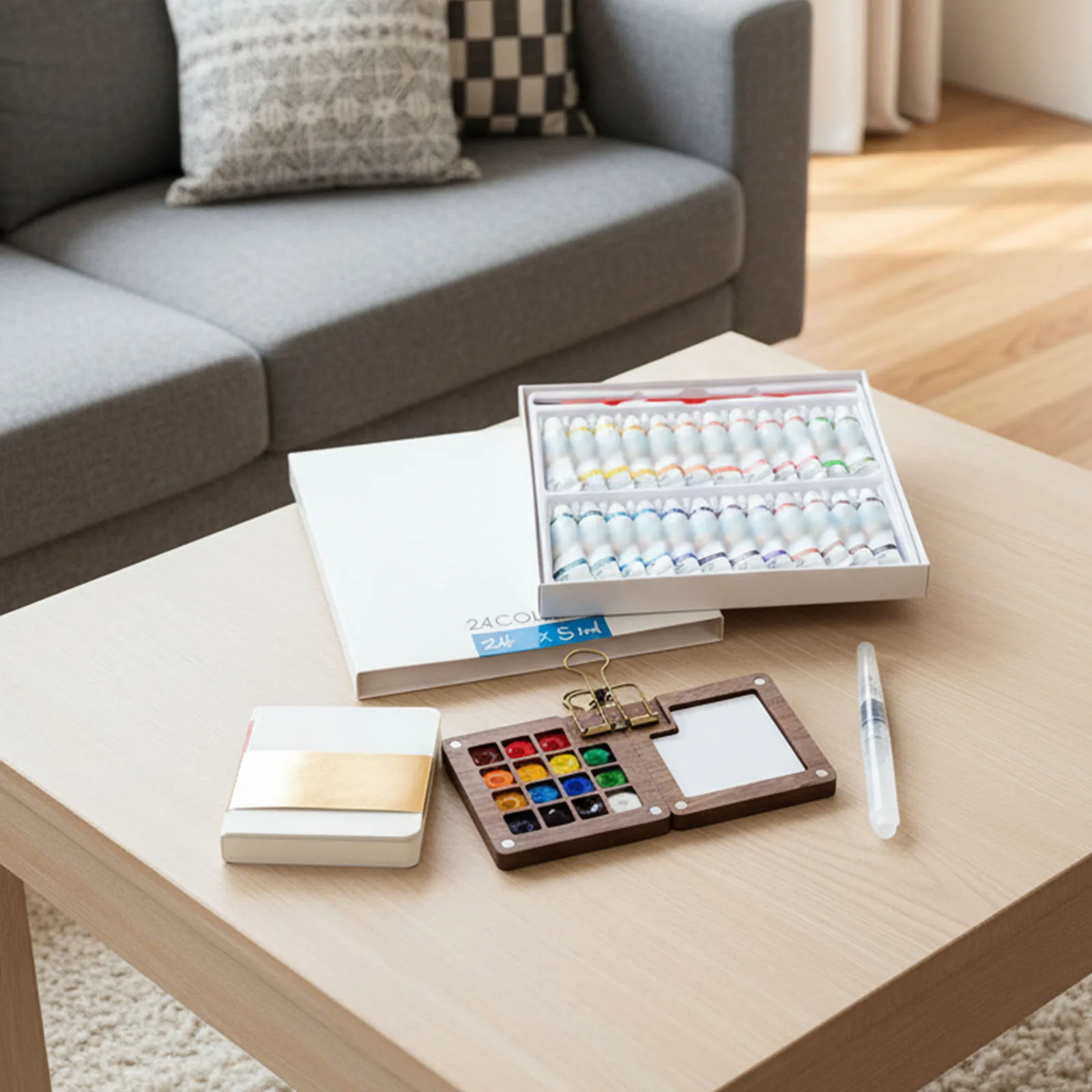 5.Kit de arte de bolsillo todo en uno:Equipado con un cuaderno de bocetos, una paleta y un pincel, el Pocket Travel Paint Kit contiene todo lo necesario para comenzar a pintar de inmediato, ya sea en casa o disfrutando de la creatividad al aire libre.