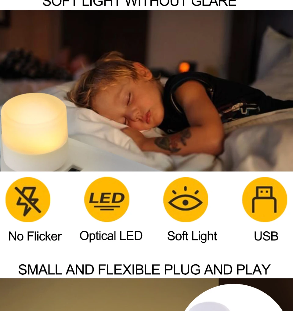 Luz nocturna USB portátil, luz suave, adecuada para el sueño nocturno e iluminación portátil.