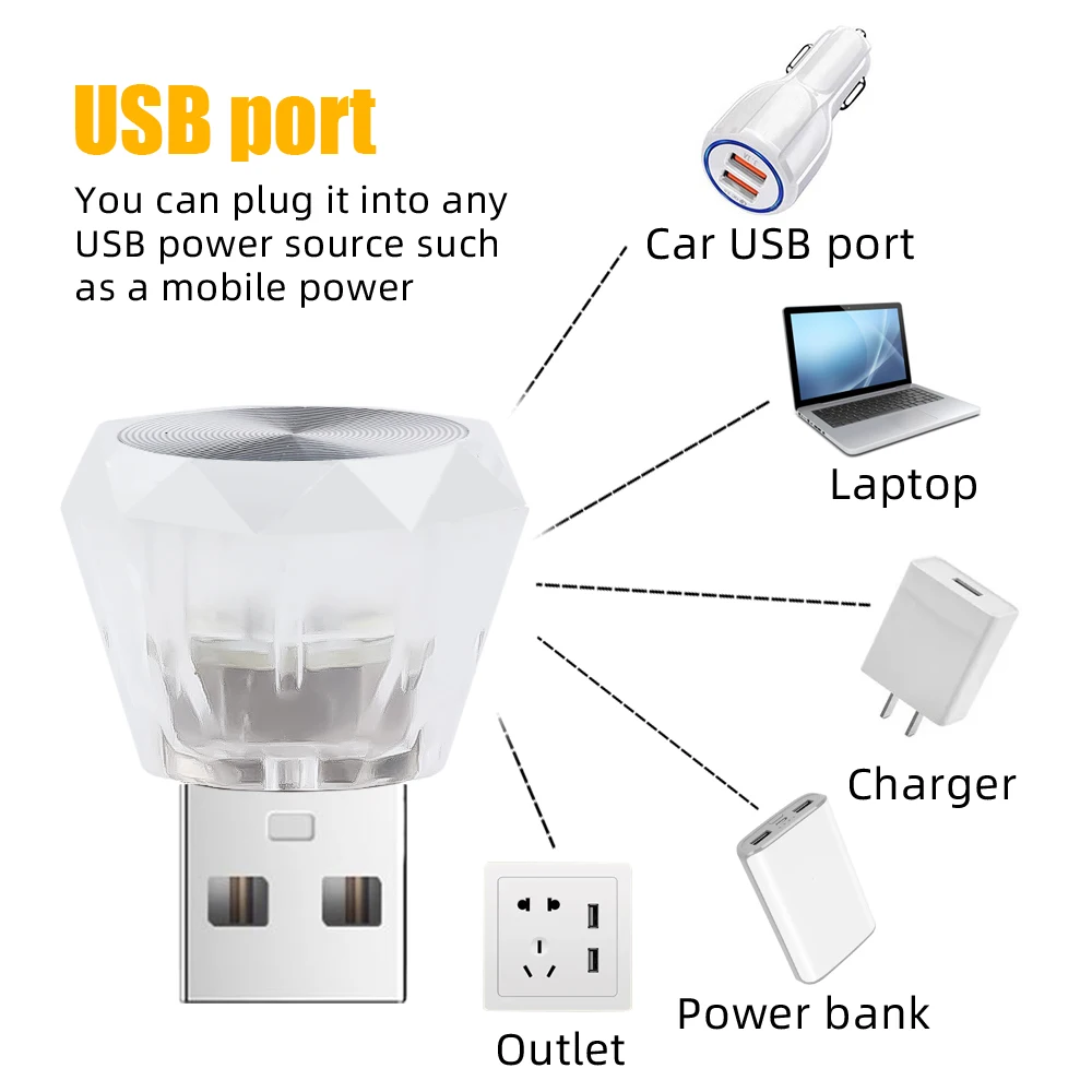 Comprar Mini lámparas de ambiente Interior para coche, luces Led universales USB para decoración de coche, fiesta, hogar, luz nocturna, Plug And Play