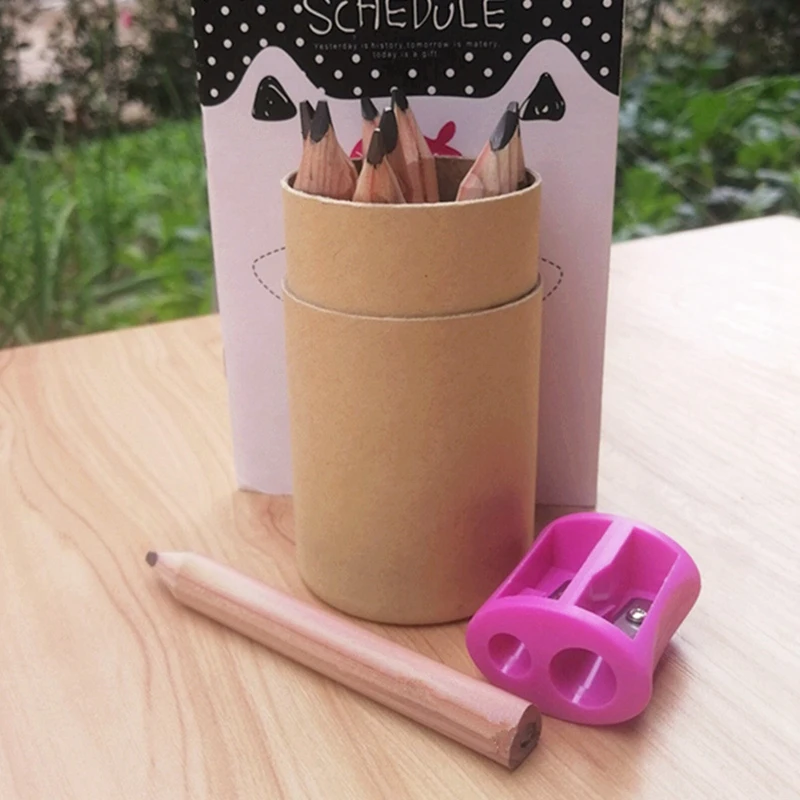 El paquete incluye: 8 unidades de pancils cortos y triangulares con un sacapuntas; una cantidad suficiente puede satisfacer sus diferentes demandas y reemplazarlos; son fáciles de limpiar y afilar, lo que le brinda comodidad.