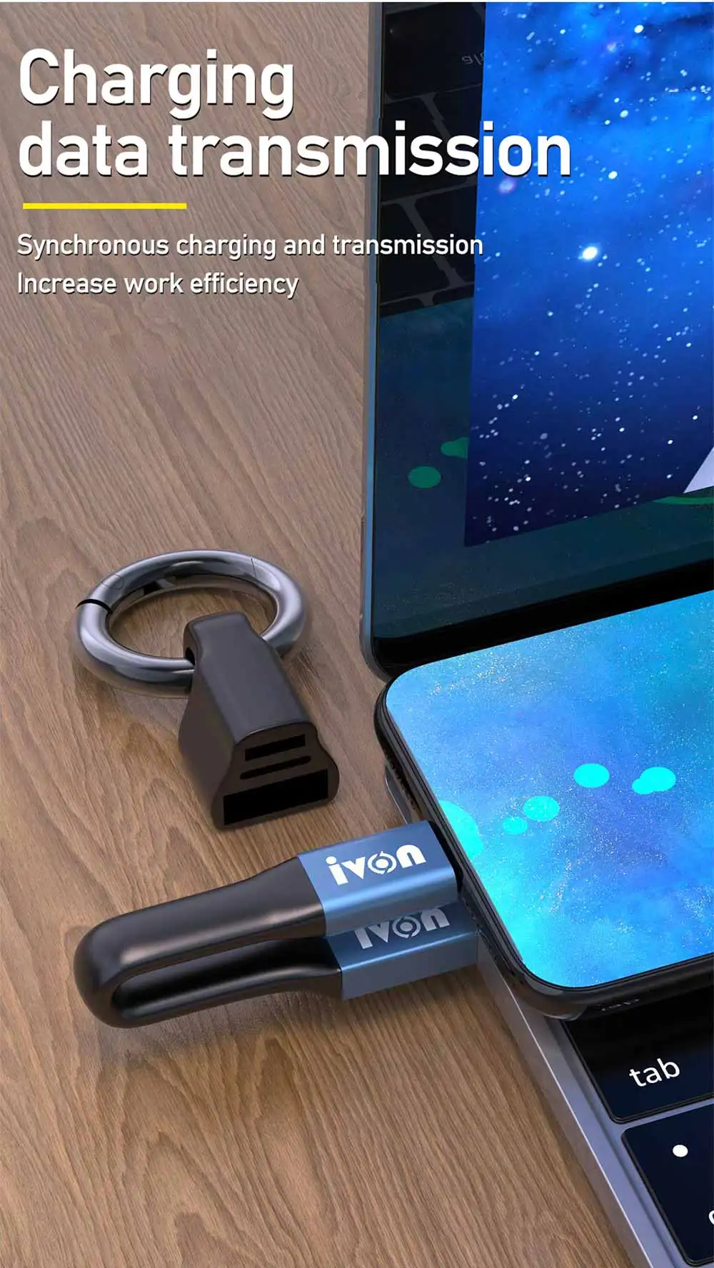 Comprar Mini llavero de datos USB portátil, Cable de carga rápida Micro USB tipo C, Cable corto para iPhone 14, 3A, Samsung, Xiaomi, Huawei