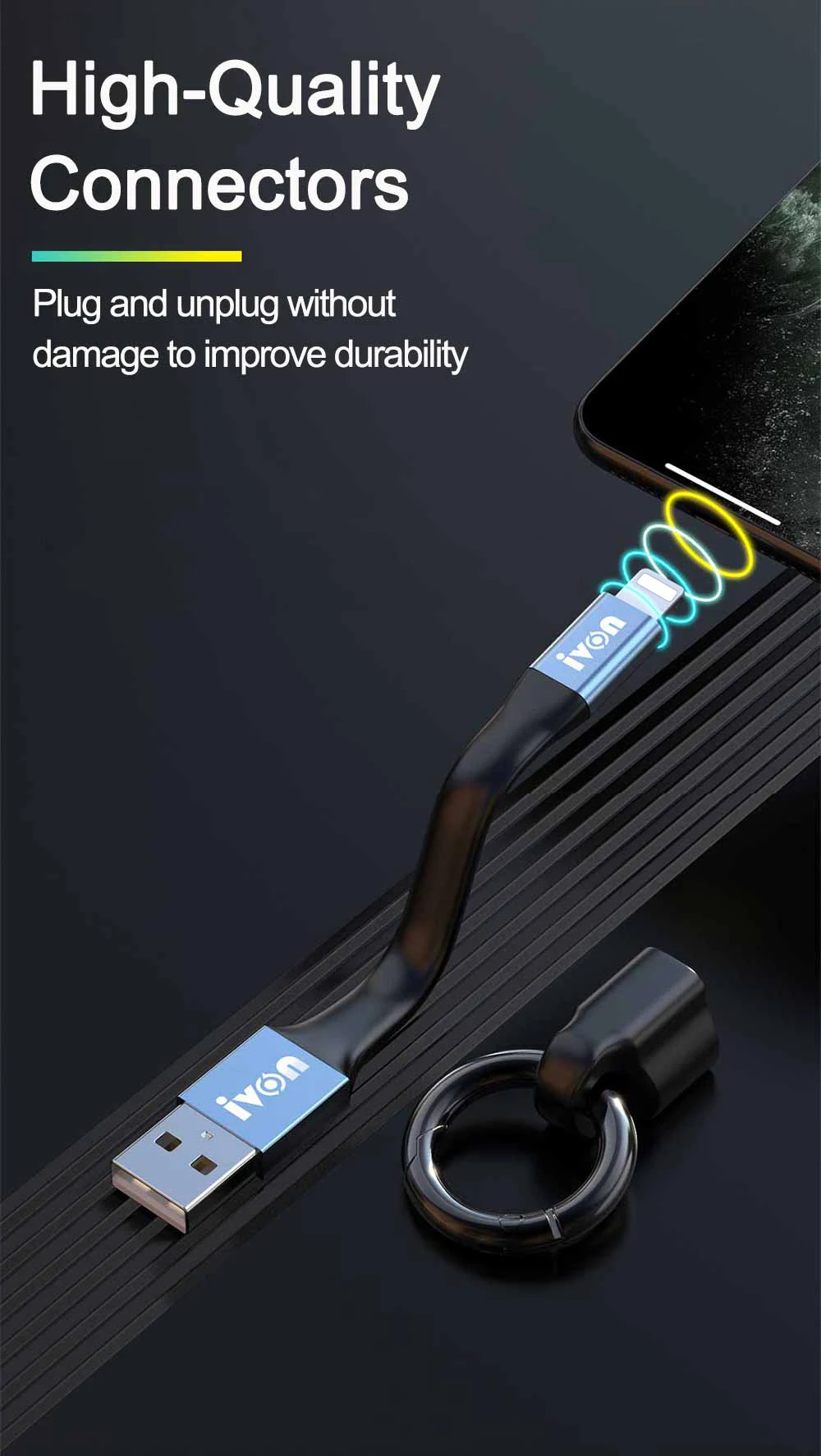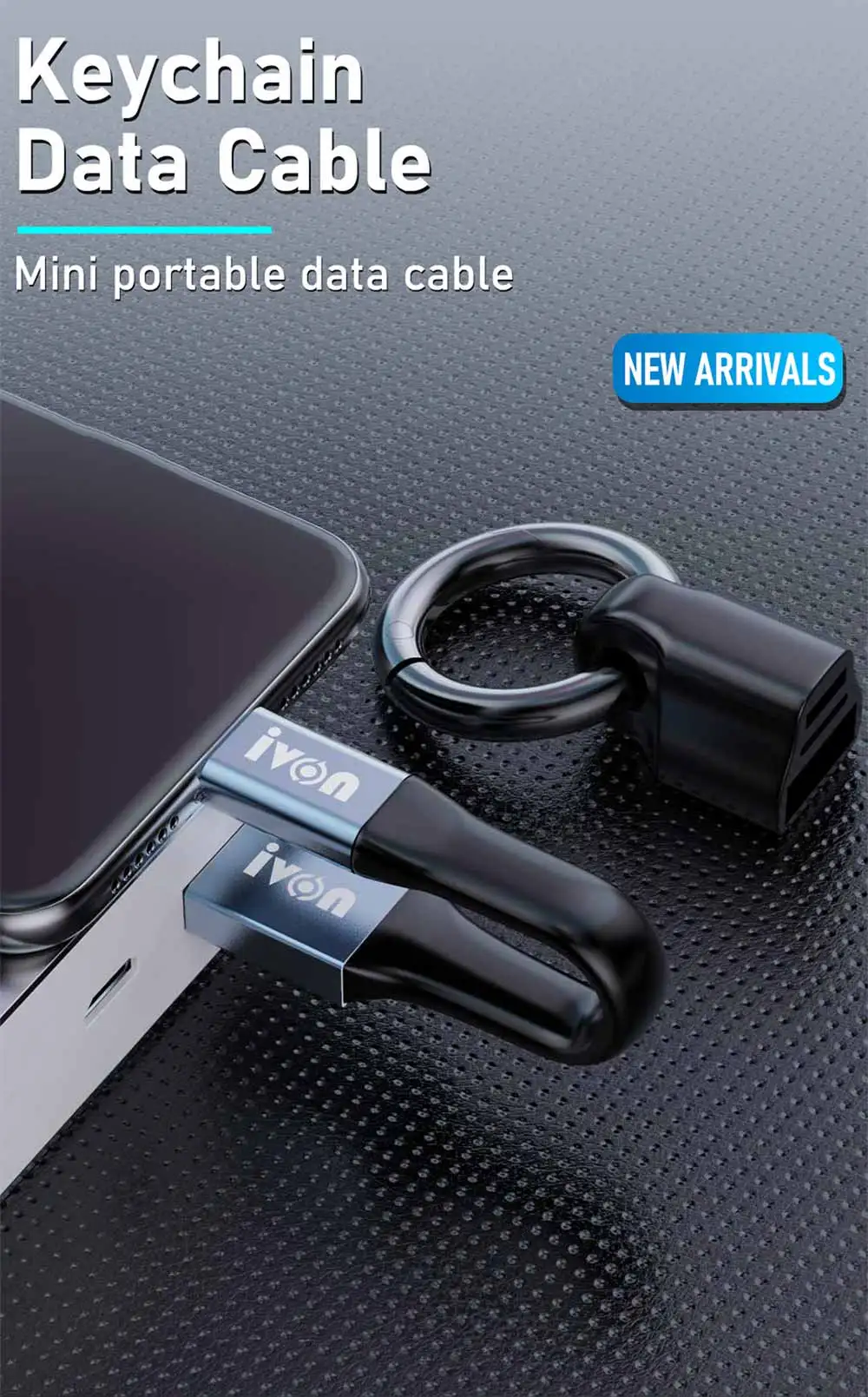 Mini llavero Cable de datos USB portátil para iPhone 3A carga rápida Micro USB C tipo C Cable corto para Samsung Xiaomi Huawei