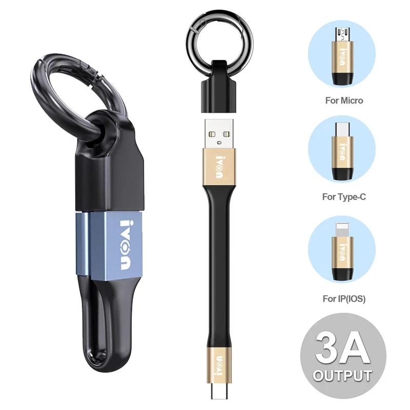 Mini llavero Cable de datos USB portátil para iPhone 3A carga rápida Micro USB C tipo C Cable corto para Samsung Xiaomi Huawei