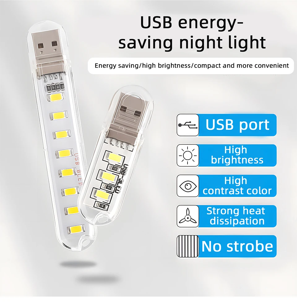 Mini luces LED USB para libros, lámparas USB portátiles, DC 5V, lámpara de lectura ultrabrillante para banco de energía, Camping, PC, portátiles, luces nocturnas