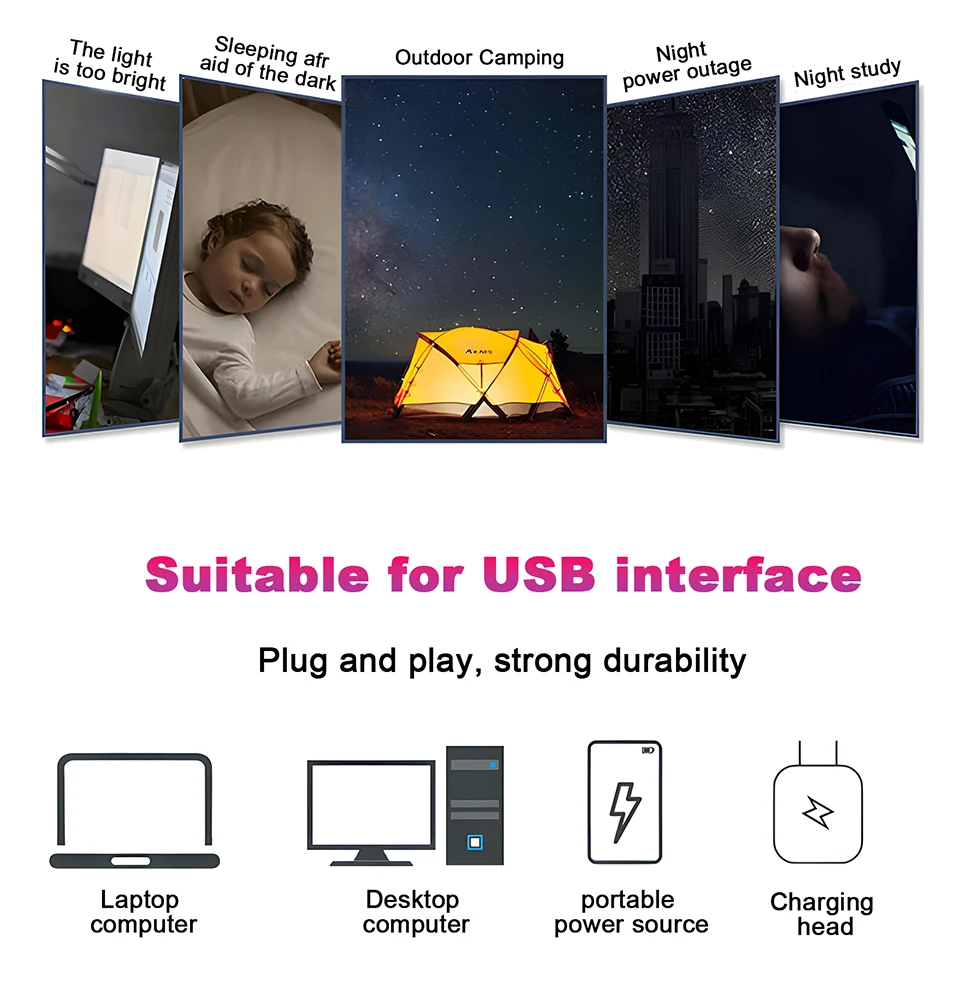 Especificaciones: 1. La lámpara USB es resistente al calor y a la presión, puede usarla durante mucho tiempo porque la placa de circuito está hecha de material duradero. 2. Luz nocturna USB portátil, luz suave, adecuada para el sueño nocturno e iluminación portátil. 3. Adecuado USB para puertos, ordenadores portátiles, cabezales de carga, fuentes de alimentación móviles, etc. 4. Tamaño Mini, fácil de llevar, dormitorio, escritorio, salir, etc. 5. Dos tipos de luces, luz cálida de 3000K y luz blanca de 7000K, son adecuadas para su uso en múltiples entornos.