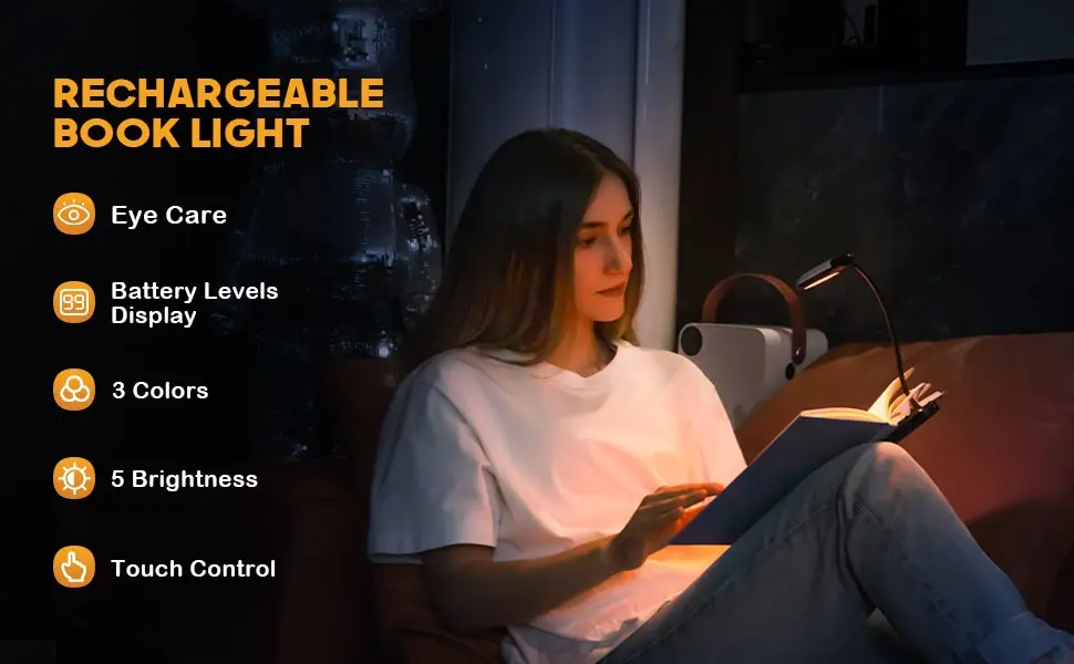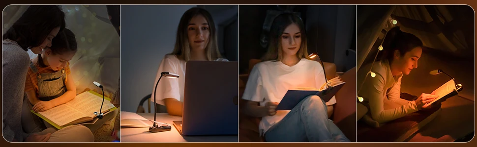 • Flexible y fácil de clip :La luz se puede recortar fácilmente a cualquier superficie, lo que la hace perfecta para leer en la cama o en el sofá.
