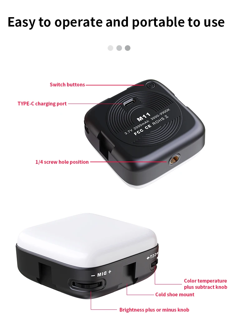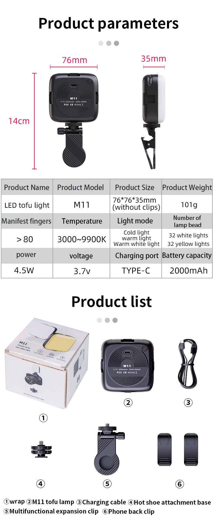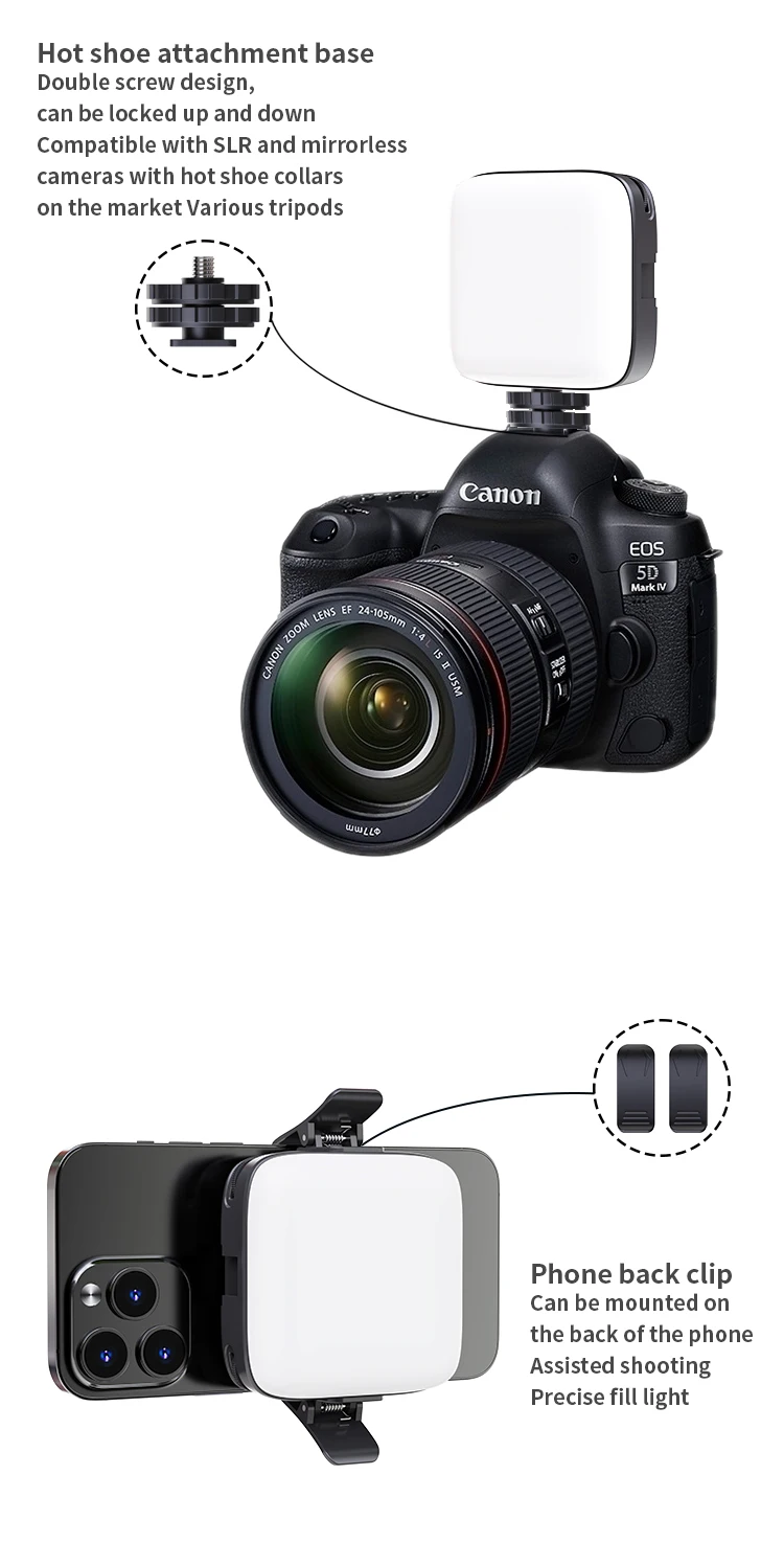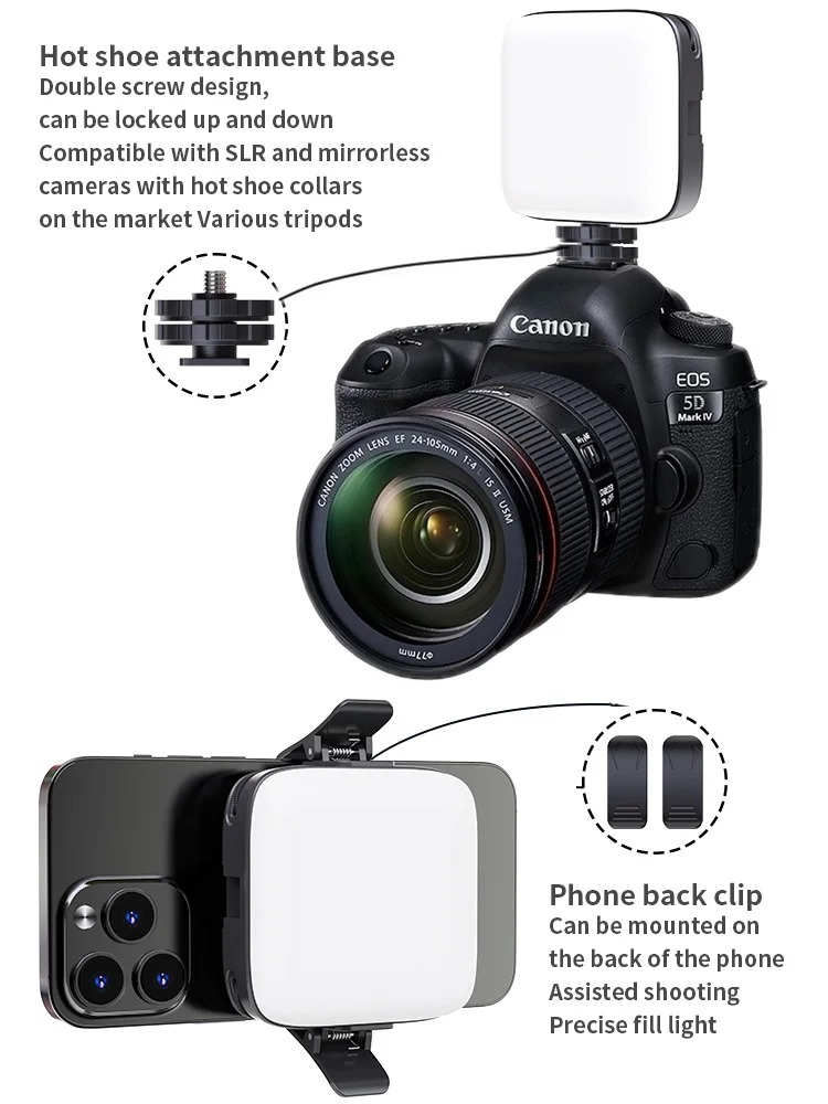 Mini Luz de relleno LED Iluminación bicolor Zapata fría para cámara Videocámara Vlog Clip trasero extraíble Luz de fotografía de teléfono móvil
