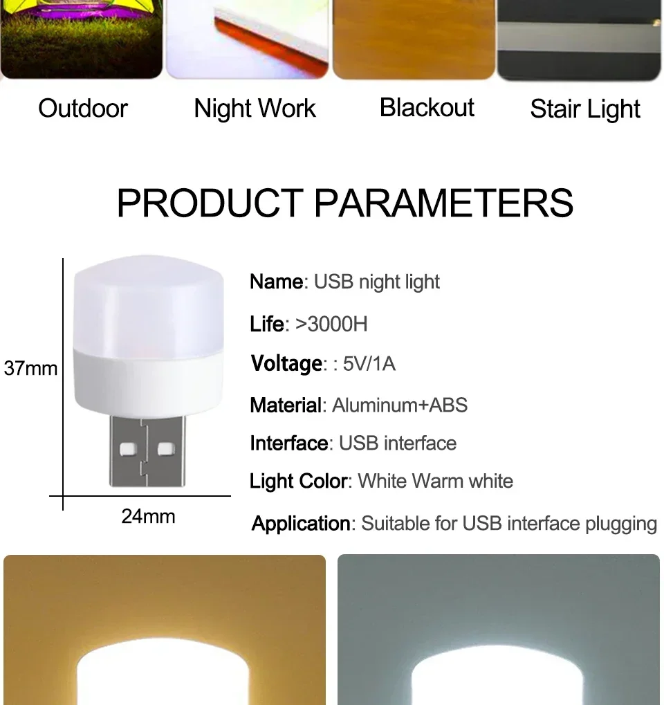 Luz nocturna USB portátil, luz suave, adecuada para el sueño nocturno e iluminación portátil.