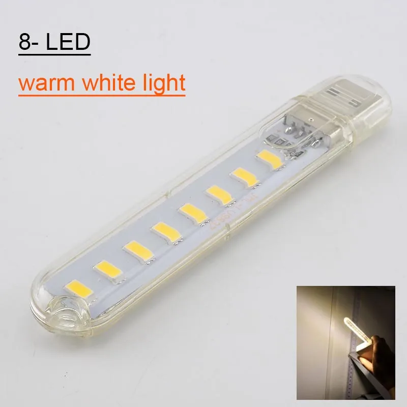 Mini luz nocturna portátil 3/8/24 LED 5V USB DC lámpara blanca cálida linterna de lectura de libros para computadora de iluminación de Banco de energía
