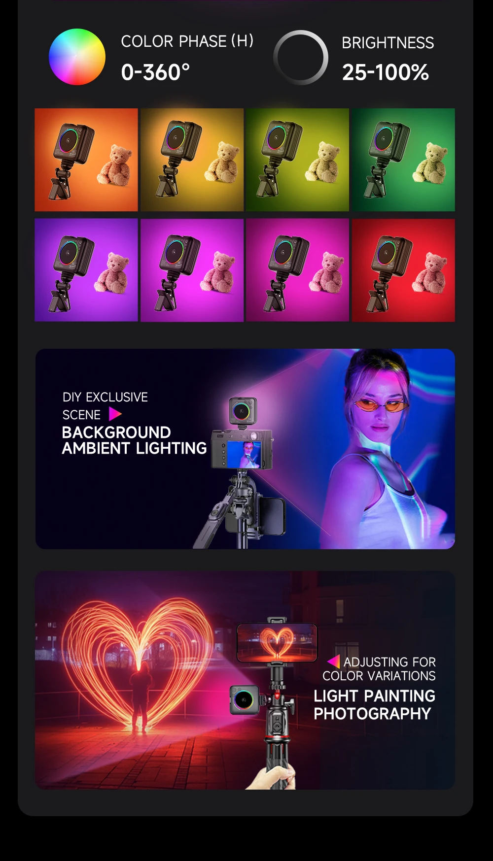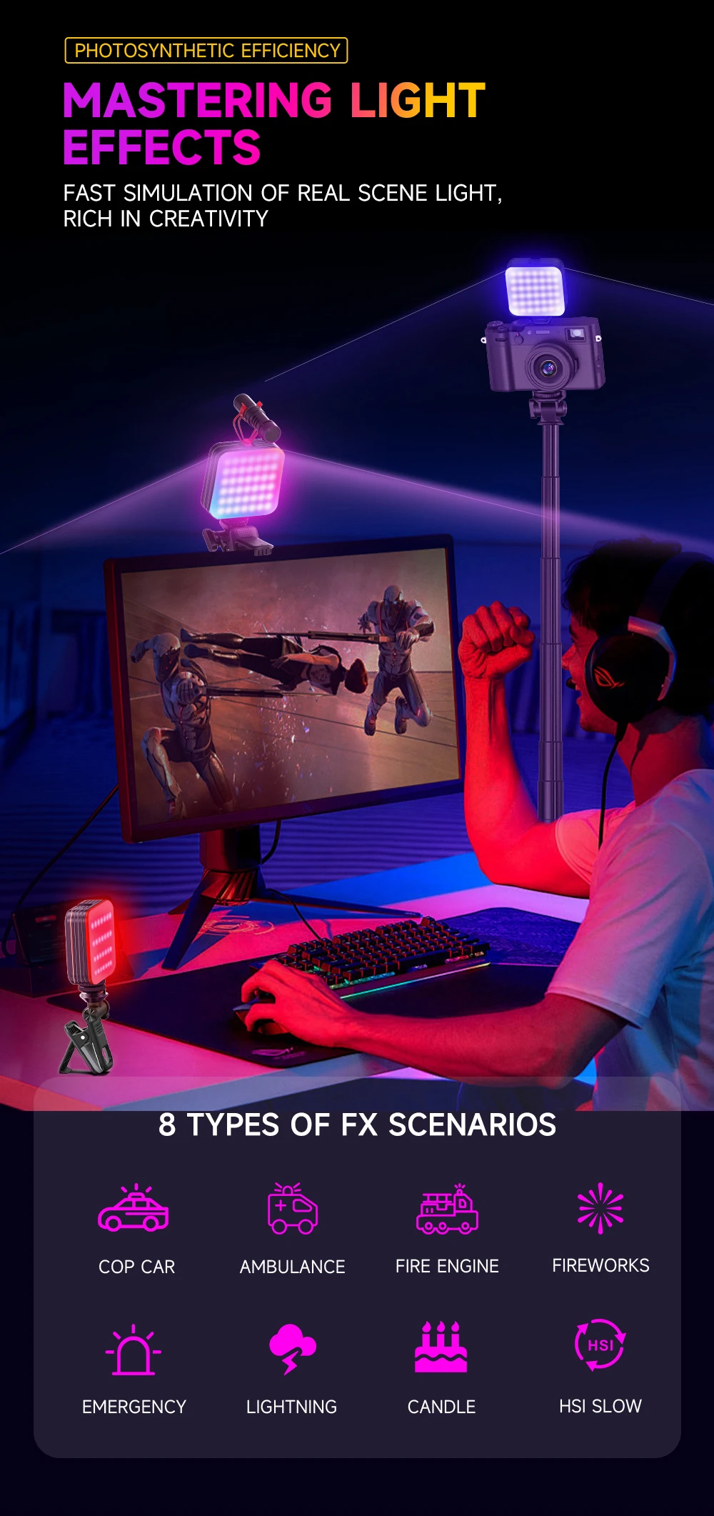 【Portátil y liviano】: el tamaño liviano y portátil de la luz de relleno del teléfono celular incluso le permite llevarla consigo por la noche para transmisiones/selefies al aire libre sin ninguna carga.La bolsa de almacenamiento adicional facilita su transporte.