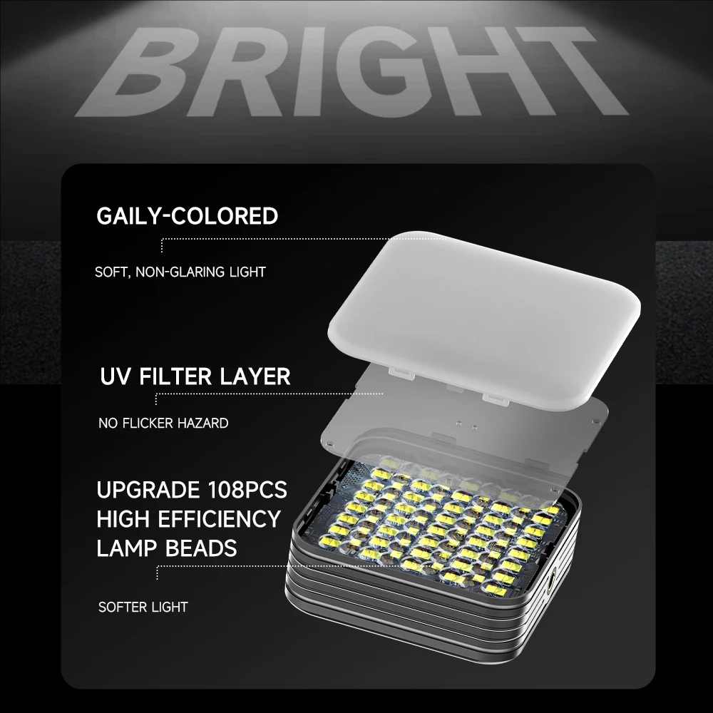 【Portátil y liviano】: el tamaño liviano y portátil de la luz de relleno del teléfono celular incluso le permite llevarla consigo por la noche para transmisiones/selefies al aire libre sin ninguna carga.La bolsa de almacenamiento adicional facilita su transporte.