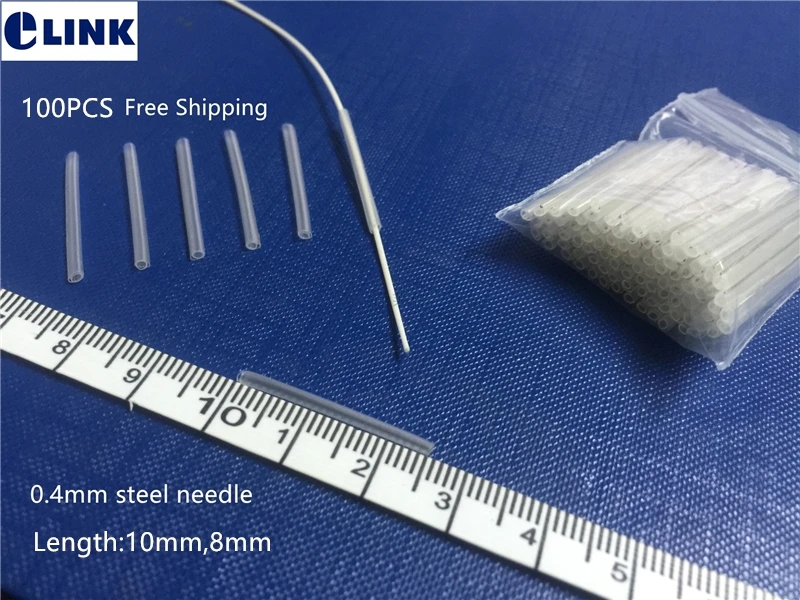 Comprar Mini manga de fusión de fibra óptica, aguja de acero inoxidable reforzada de 0,4mm, 10mm, 8mm, especial para 250um, Envío Gratis, 100 piezas