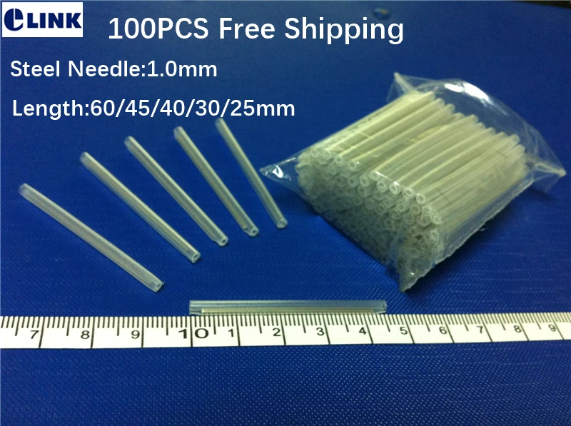 Comprar Mini manguito de fusión de fibra óptica, aguja de acero inoxidable reforzada de 1,0mm, 60 45 40 30 25mm para fibra de 500um, envío gratis, 100 Uds.