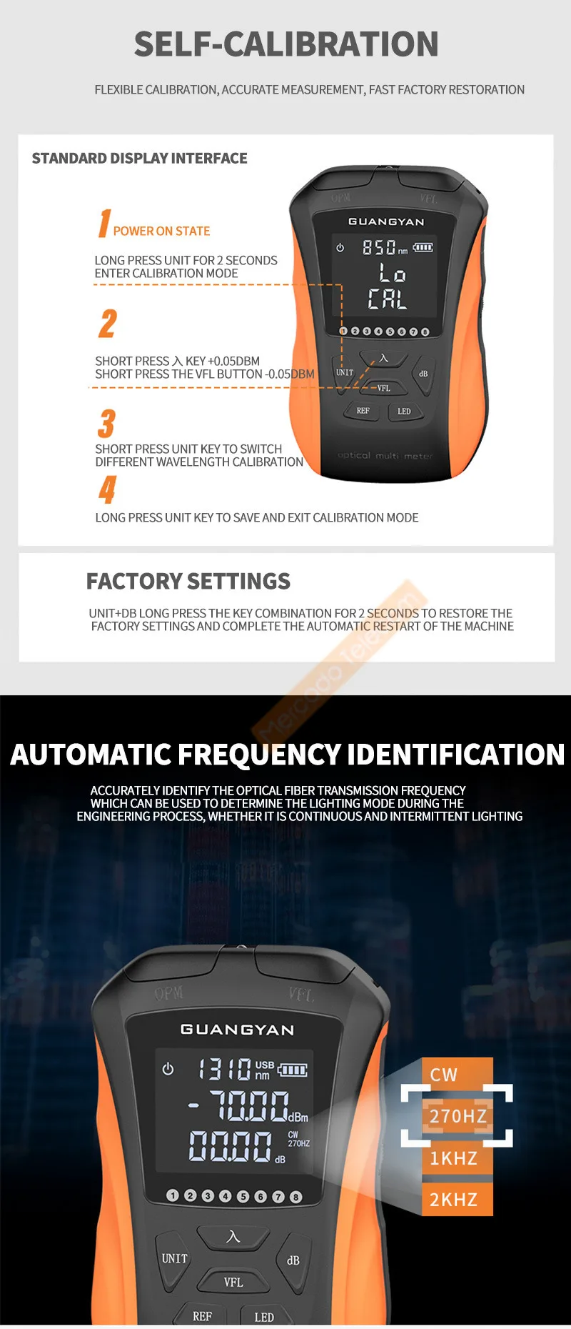 6. Reconocimiento automático de frecuencia: identifica con precisión la frecuencia de transmisión de fibra óptica, que se puede utilizar para determinar el método de iluminación durante el proceso de construcción, ya sea continuo e intermitente.