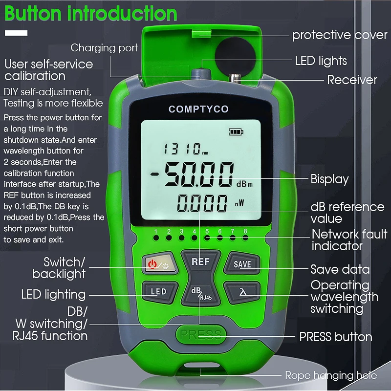 Comprar Mini medidor de potencia óptica 3 en 1 (OPM) y prueba de red y iluminación LED AUA-MC5/MC7/M5/M7 FTTH probador de Cable de fibra óptica portátil