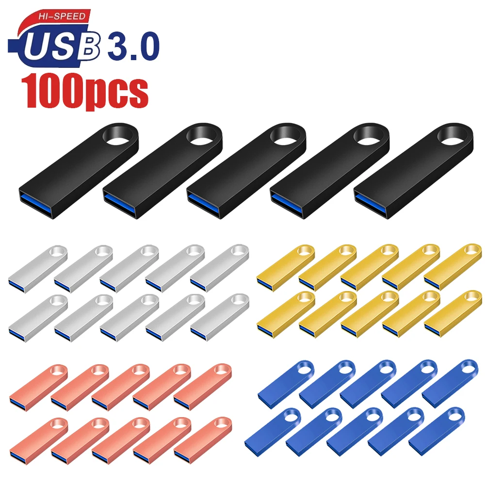 Comprar Mini memoria USB 100 de Metal, PenDrive de alta velocidad, Flash, 32GB, 64GB, 3,0 GB, 128 piezas