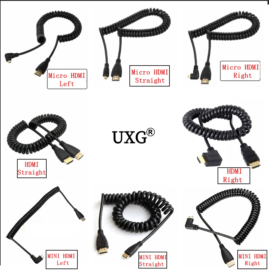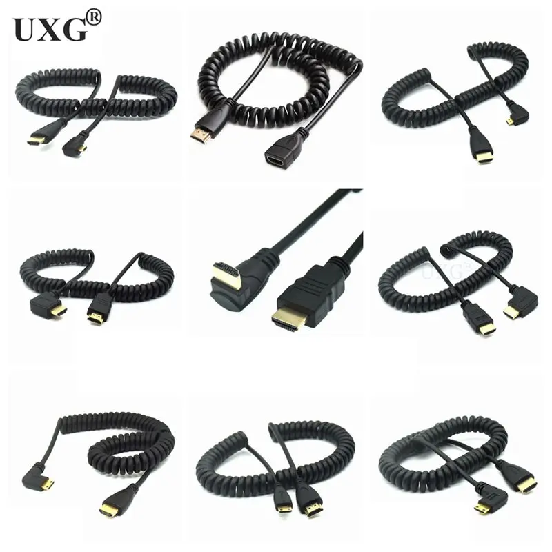 Comprar Mini Micro HD macho a macho, Cable Flexible DSLR de 50cm compatible con HDTV, 90 grados, derecha, abajo, izquierda, tipo angular