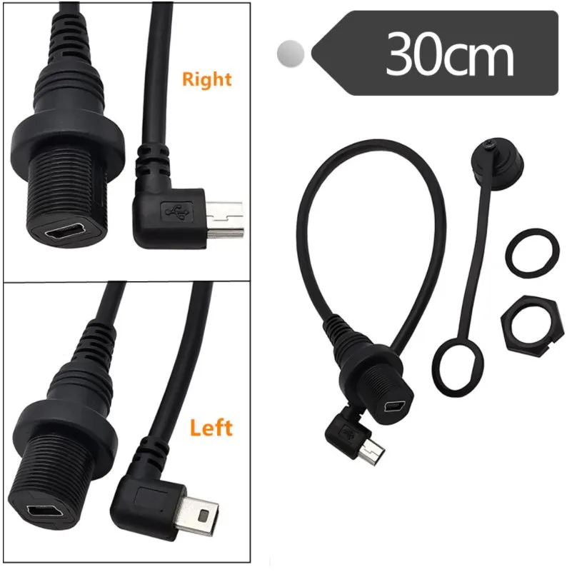 480Mbps Mini USB Micro USB 2,0 tipo C macho a hembra AUX montaje en Panel empotrado extensión adaptador de carga de datos Cable impermeable 30CM para coche camión barco motocicleta salpicadero