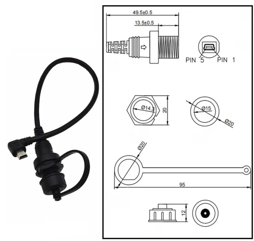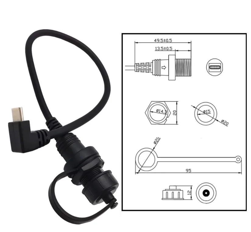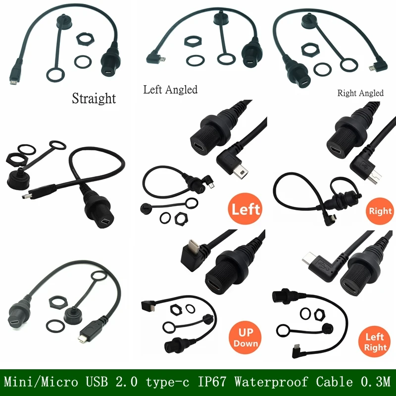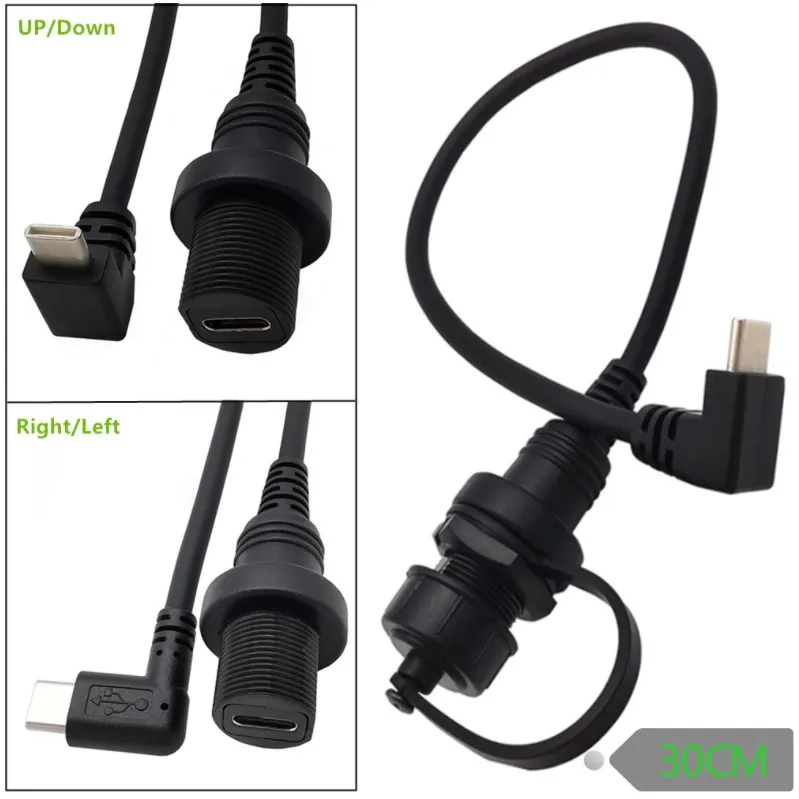 Comprar Mini Micro USB 2,0 tipo c, Cable de extensión impermeable IP67, USB 3,1 tipo c, montaje en Panel macho a hembra, resistente al agua, usb-c, 30cm