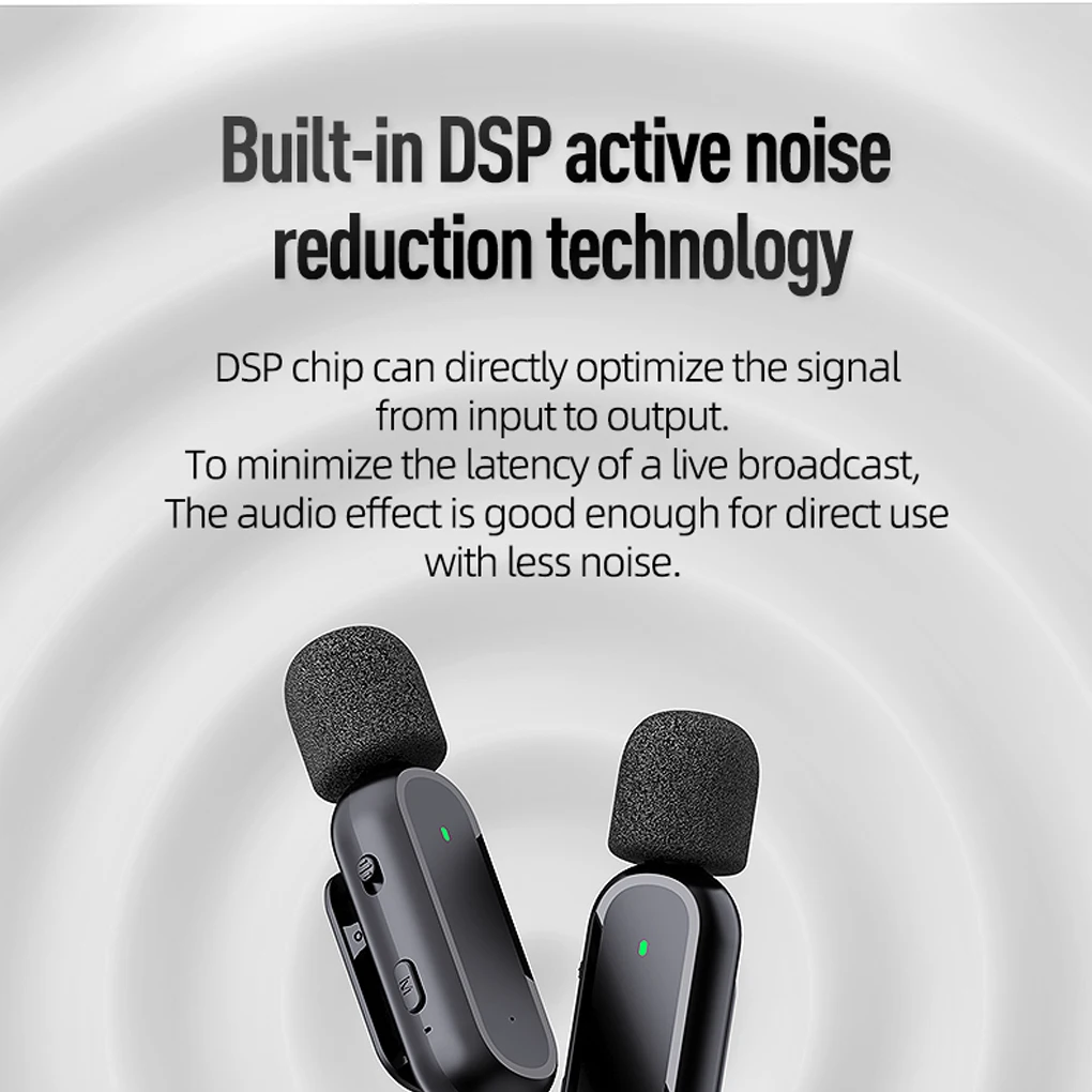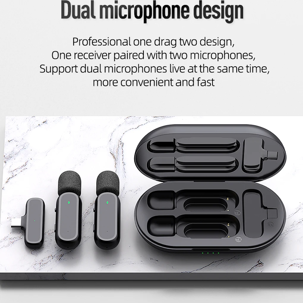 Comprar Mini micrófonos inalámbricos para grabación de Video, micrófono recargable, baja latencia, reducción de ruido, teléfono móvil, electrónica, tipo 2