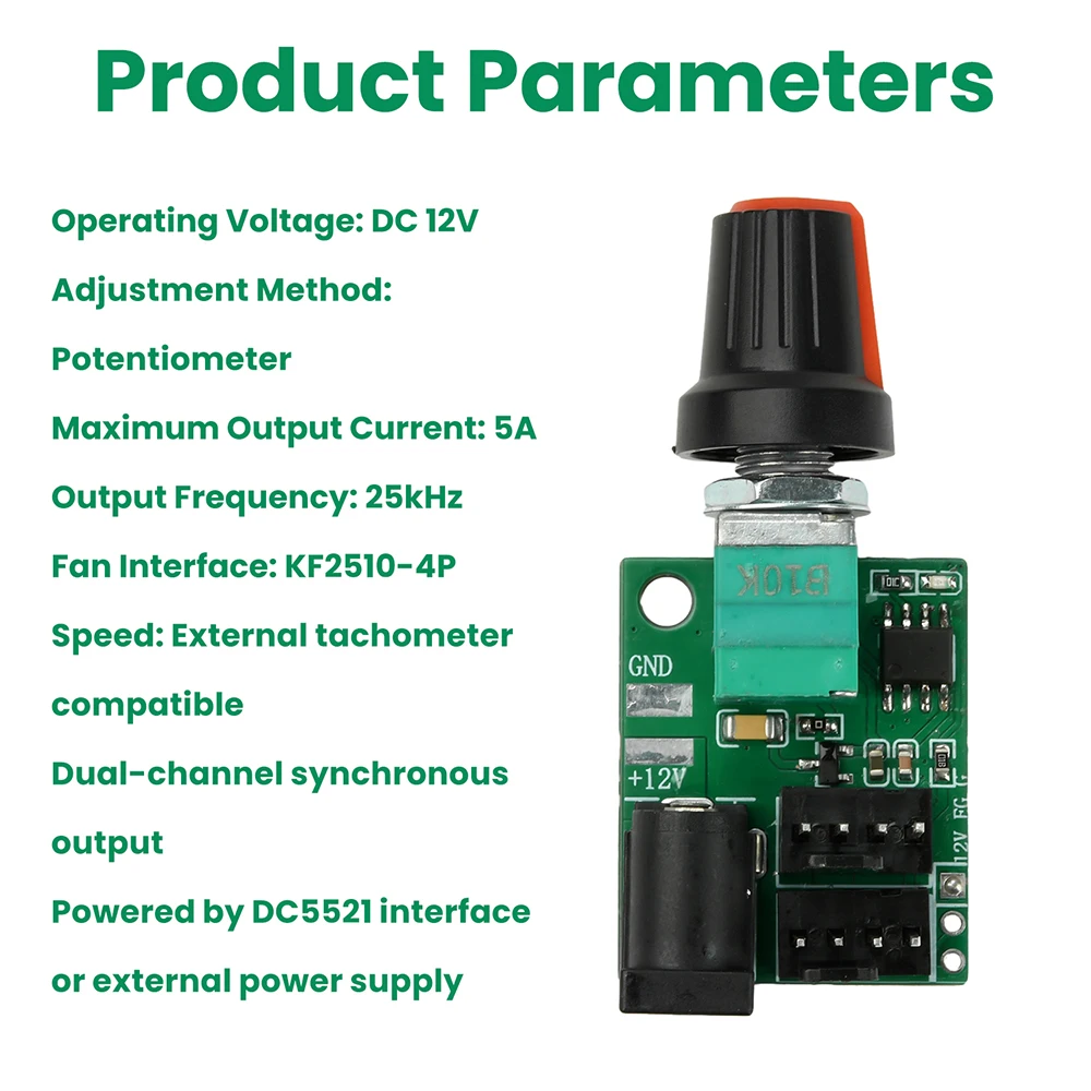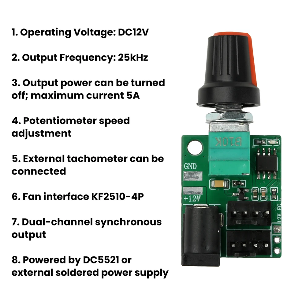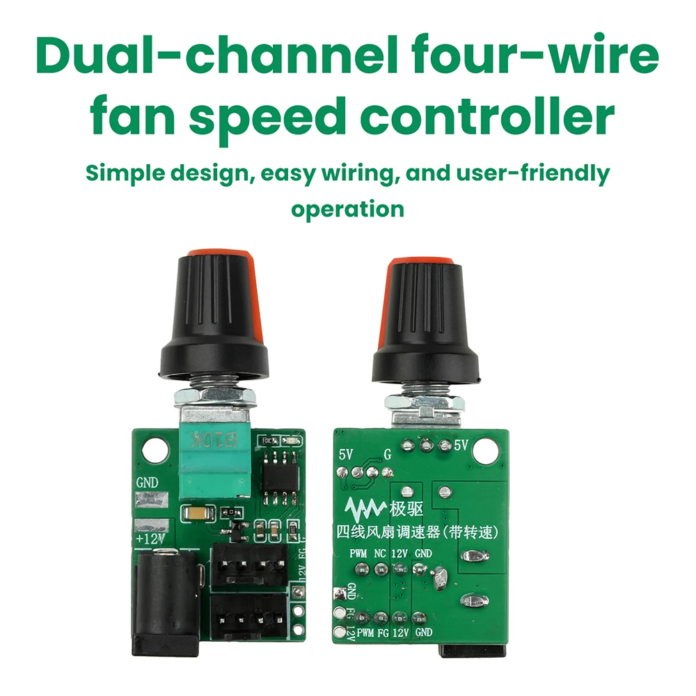1 x DC 12V 5A Dual-Channel Four-Wire Fan Controller PWM Fan Speed Control Manual Speed Adjustment