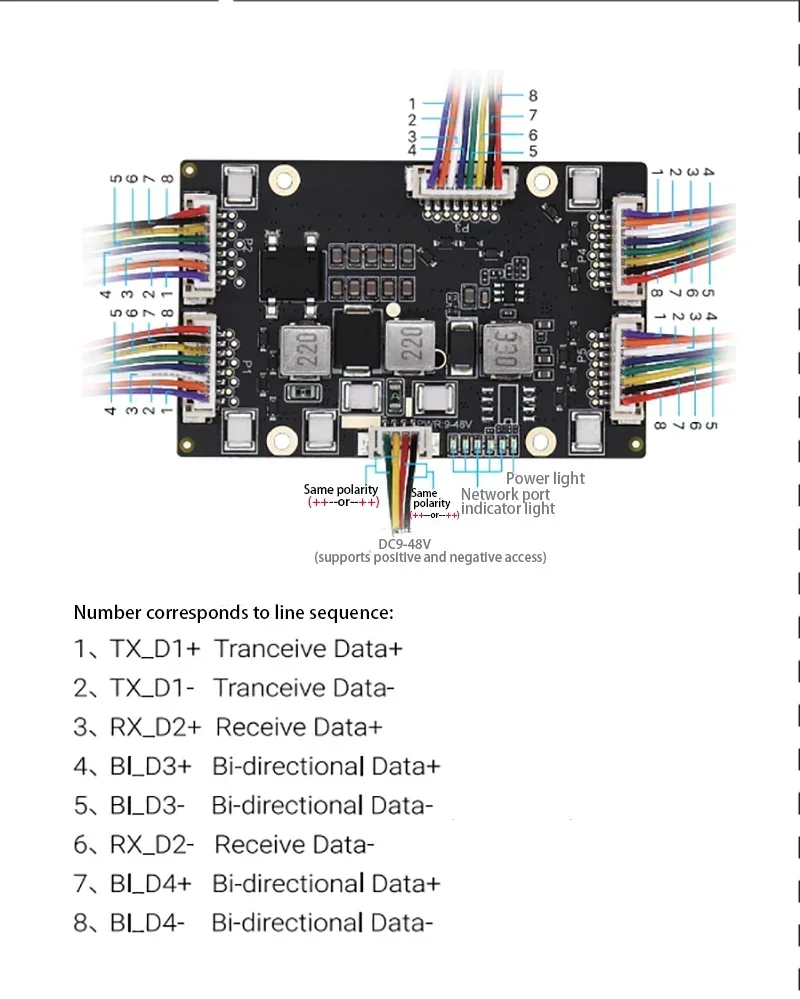 Estándar: IEEE 802.3802.3I, 802.3u, 802,3 xLED Indicador: Fuente de alimentación, Interfaz de enlace/ACT: 5 Gigabit Ethernet con voltaje de entrada de la base de bloqueo: 9 ~ 48V (admite protección hacia adelante y hacia atrás)