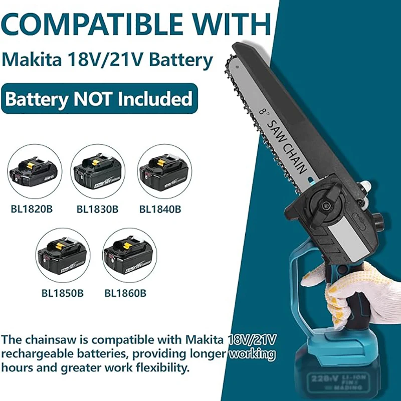 Comprar Mini motosierra sin escobillas de 8 pulgadas, Compatible con batería Makita de 18 V, motosierra de una sola mano para jardín, árboles, Loppers, corte de madera