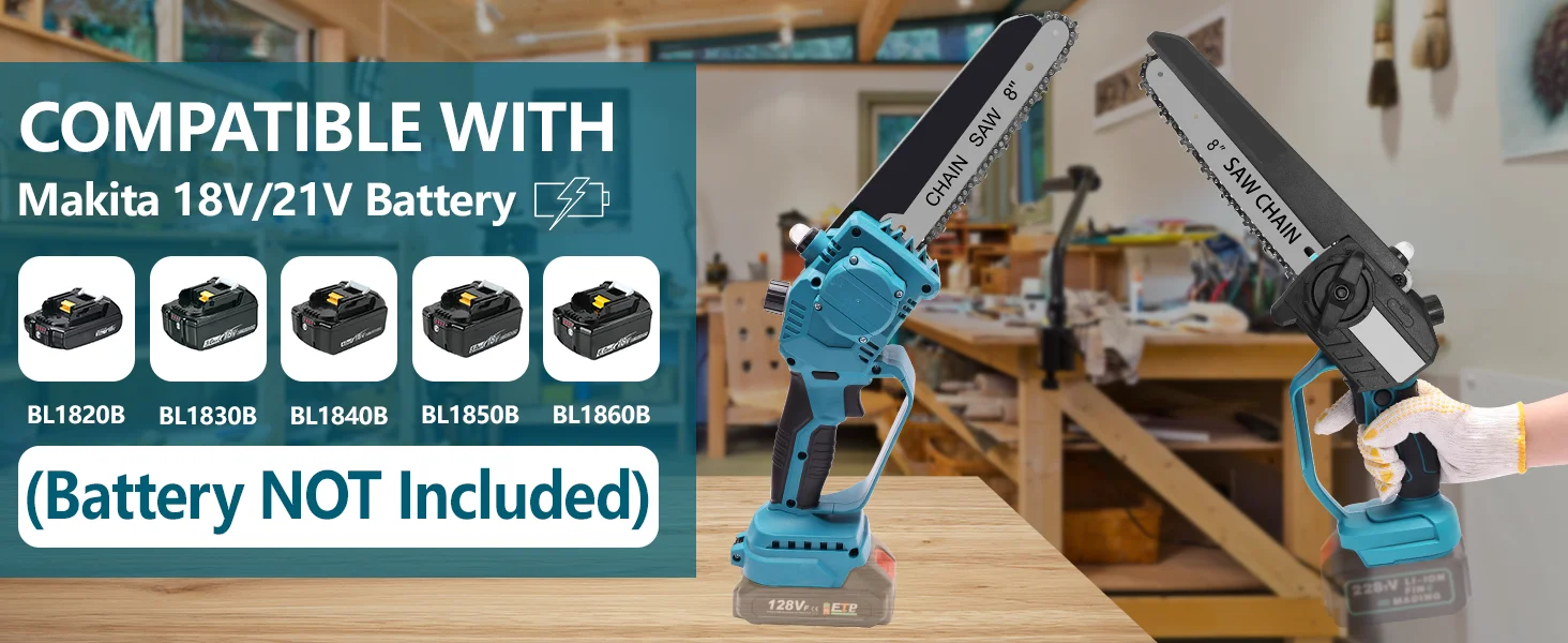 Compatible con baterías Makita de 18 V: nuestra motosierra es compatible con la potente batería Makita de 18 V, que ofrece un mayor tiempo de funcionamiento y mayor flexibilidad en su trabajo.Diseñada para personas que tienen mucho que ver con jardines, granjas o proyectos de bricolaje, la motosierra corta ramas o enredaderas, elimina las latas y corta tubos de madera, bambú o polietileno.