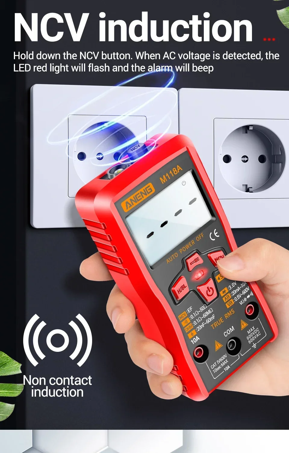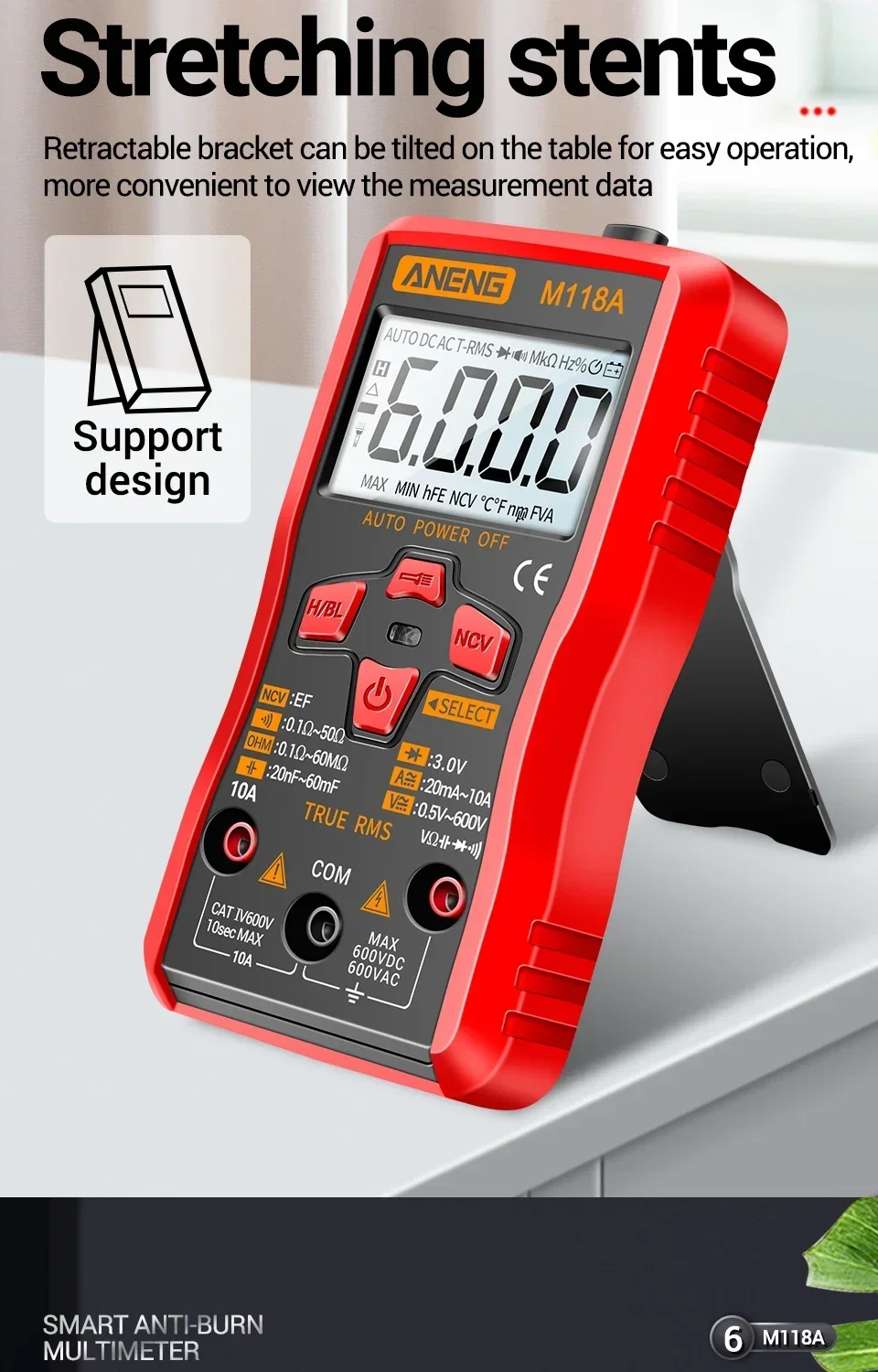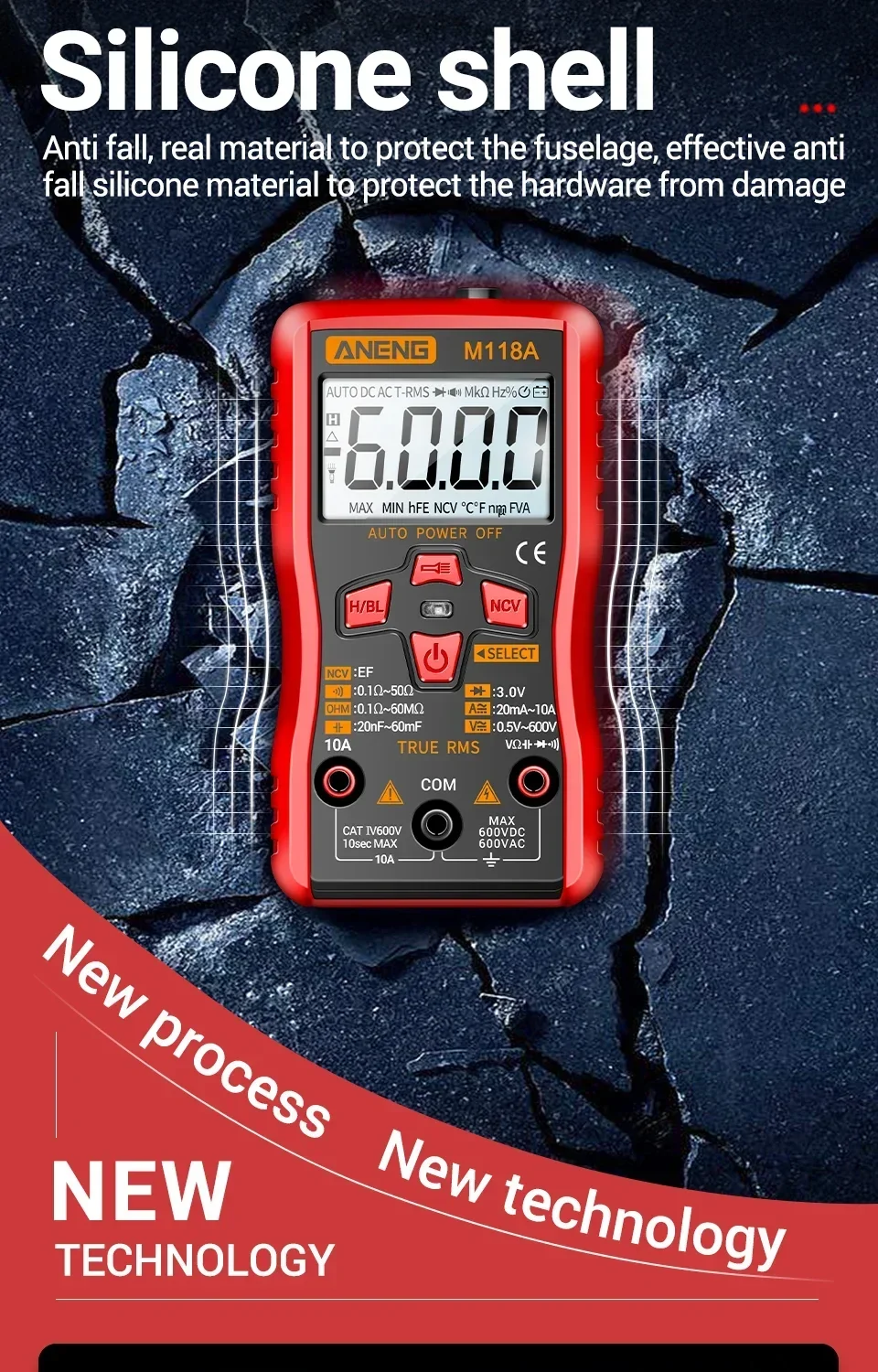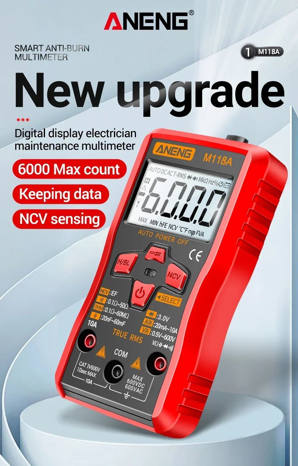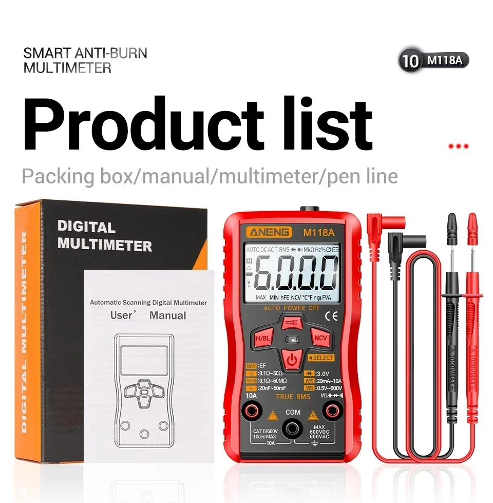 Comprar Mini multímetro Digital ANENG, 6000 recuentos, medidor automático de voltaje CC/CA, medidor de Tranistor, linterna de retención de datos NCV M118A