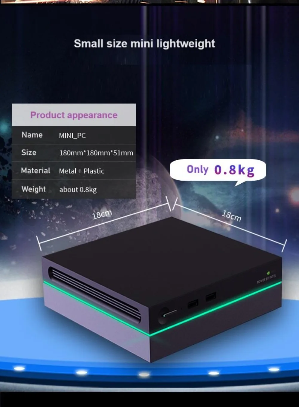 ESTILO MINI_PC TAMAÑO 180mm * 180mm * 51mm Material Plástico + metal Peso Aproximadamente 0,8 kg CPU Núcleo de Intel, para los dos GPU Gráficos Intel® Xe NVIDIA MX450 GDDR6 2GB RAM 2 * ranura para SSD 1 * M.2 22*80 SSD compatible con PCIE * 4,NVME y SATA3.0 HDD 1 * HDD de 2,5 pulgadas y 7,0mm WIFI Interfaz M.2, compatible con 802.11B/G y 802.11B/G/N y ACComprar Mini ordenador de escritorio para juegos, NVIDIA MX450, Intel Core I7-11370H, 32GB, DDR4, 1TB, M.2, para oficina, Nuc, 2024