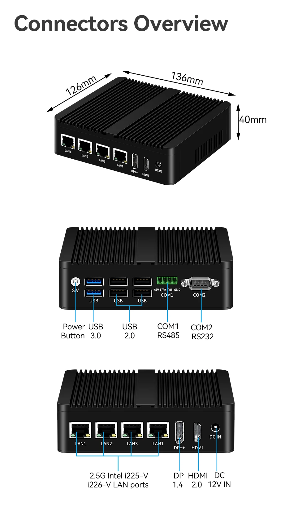 Comprar Mini ordenador Industrial sin ventilador, procesador Intel N100, puertos LAN 4x, 2x COM, RS485, RS232, Win11, Linux, Pfsense, Firewalls, enrutador suave