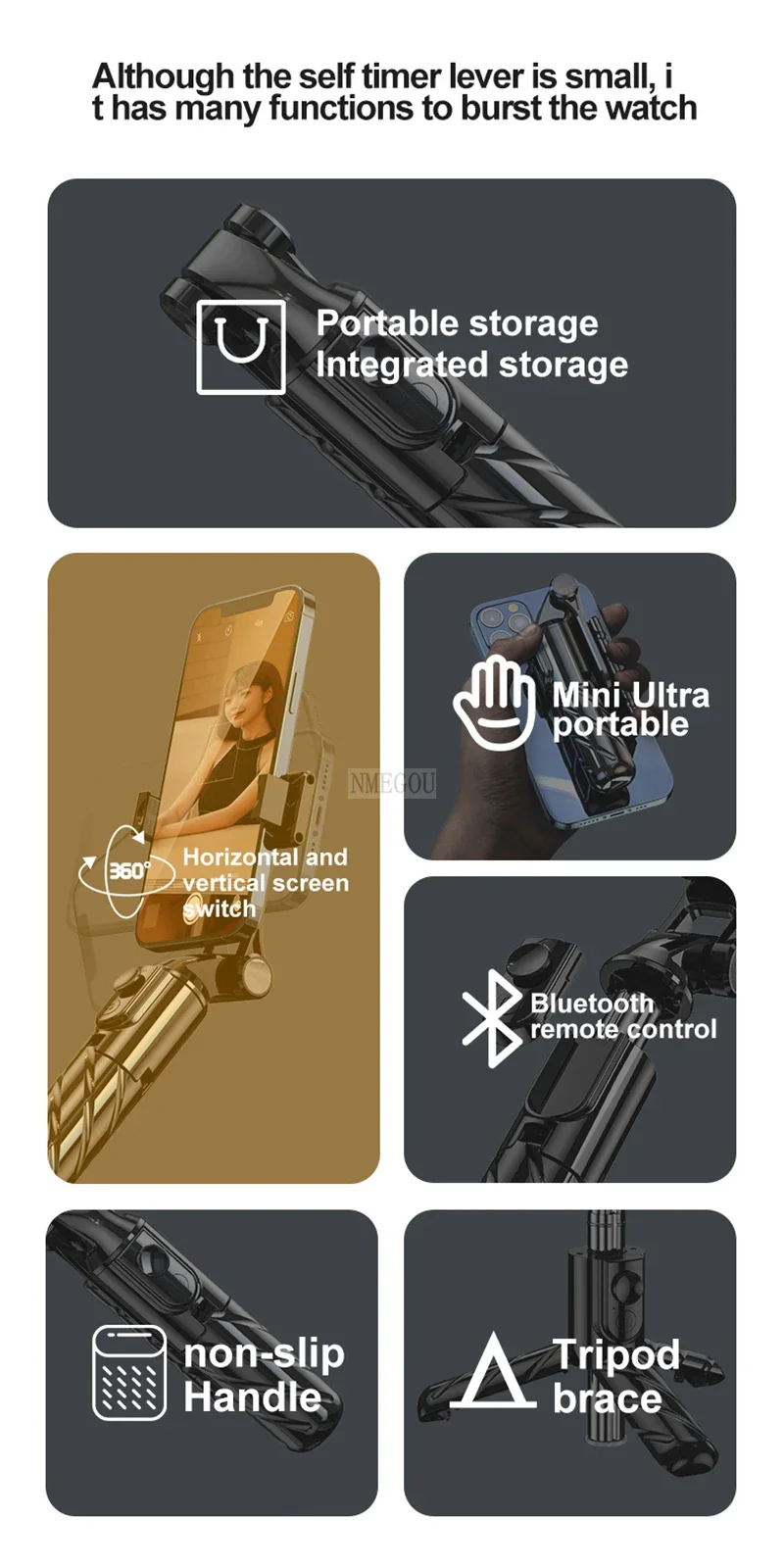 Mini cámara portátil de aluminio Bluetooth inalámbrico Selfie Stick trípode con control remoto para IPhone 13 12 Smartphone Selfiestick Monopod