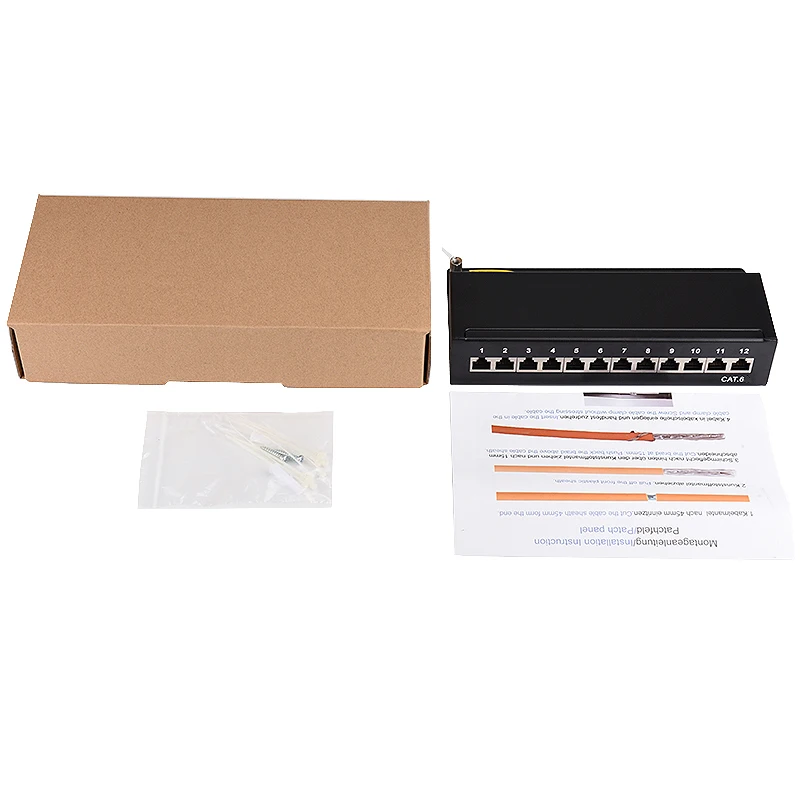 1. Mini panel de conexión Gigabit Cat.6 de escritorio 12 puertos completamente blindado