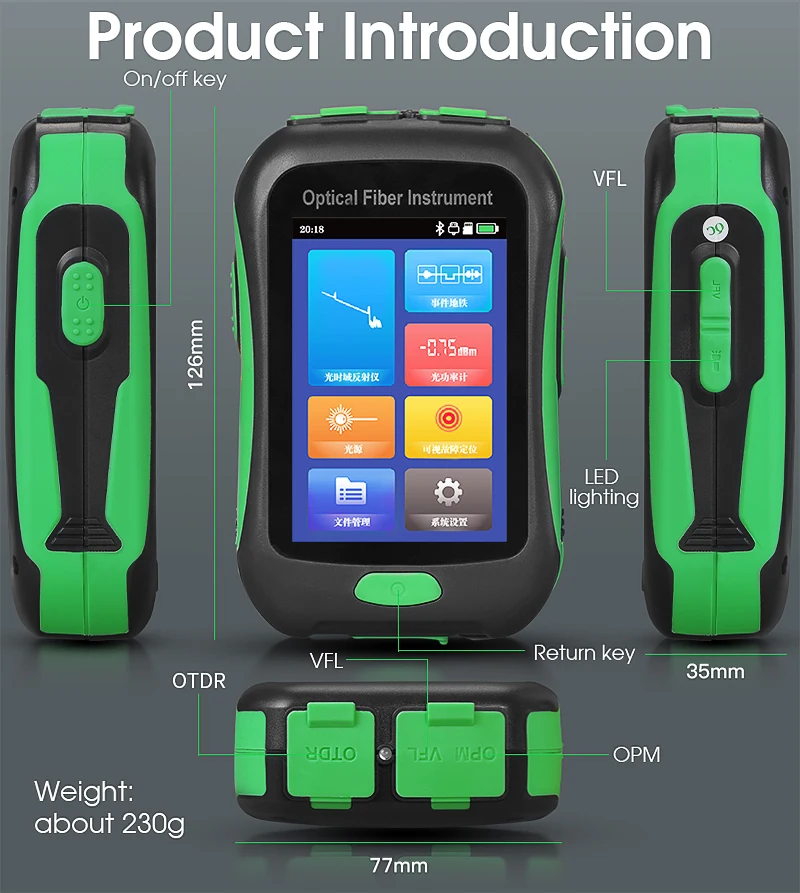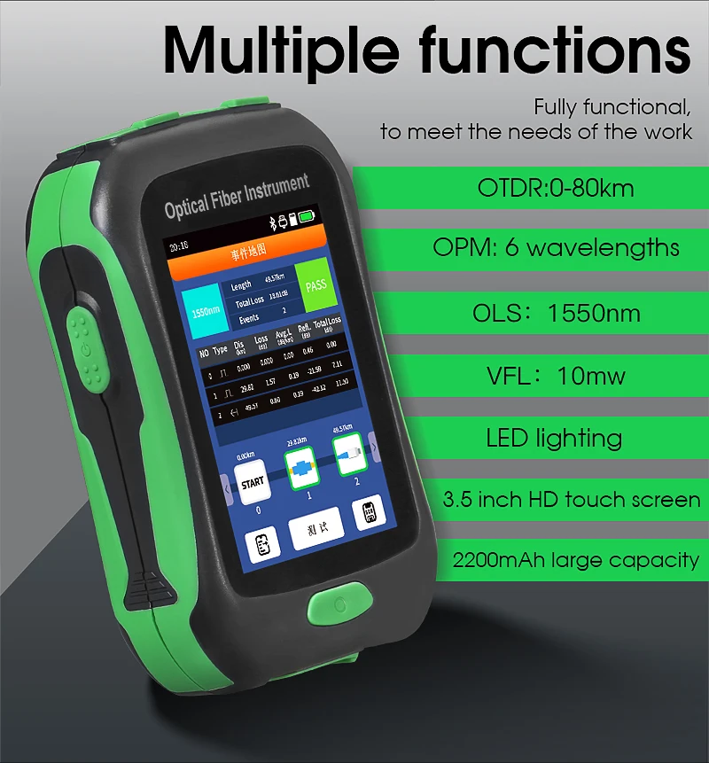 Comprar Mini pantalla táctil OTDR, prueba de fibra activa, 80KM de tiempo óptico, reflectómetro de dominio, OPM, VFL, OLS, mapa de eventos, iluminación LED