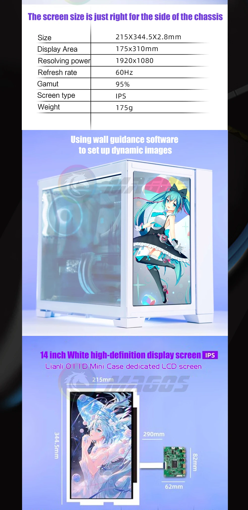 Comprar Mini pantalla de visualización dinámica O11D, Panel lateral, Monitor IPS, 60Hz, 1080P, monitoreo AIDA64, Lian Li Case MOD Part