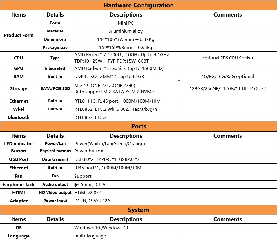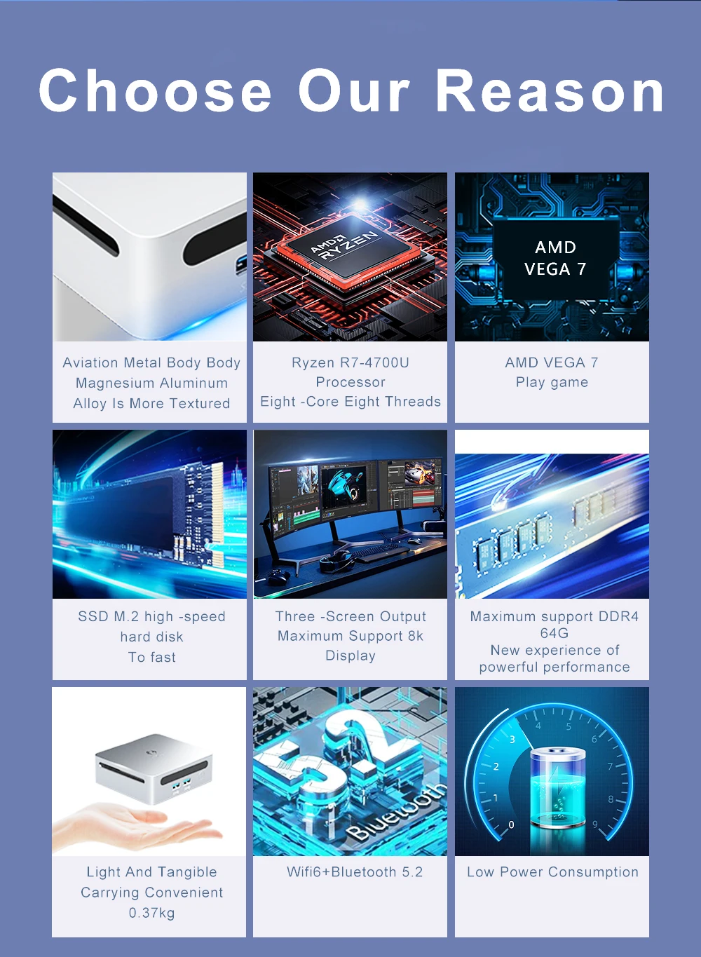 Comprar Mini PC de 8 núcleos Ren4000 4700U AMD Ryzen7 4700U CPU 2,0 GHz hasta 4,1 GHz Windows 10/11 DDR4 64GB WiFi6 NUC, ordenador de escritorio para juegos