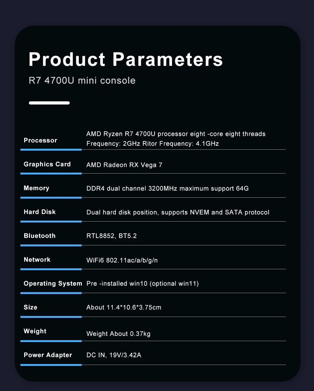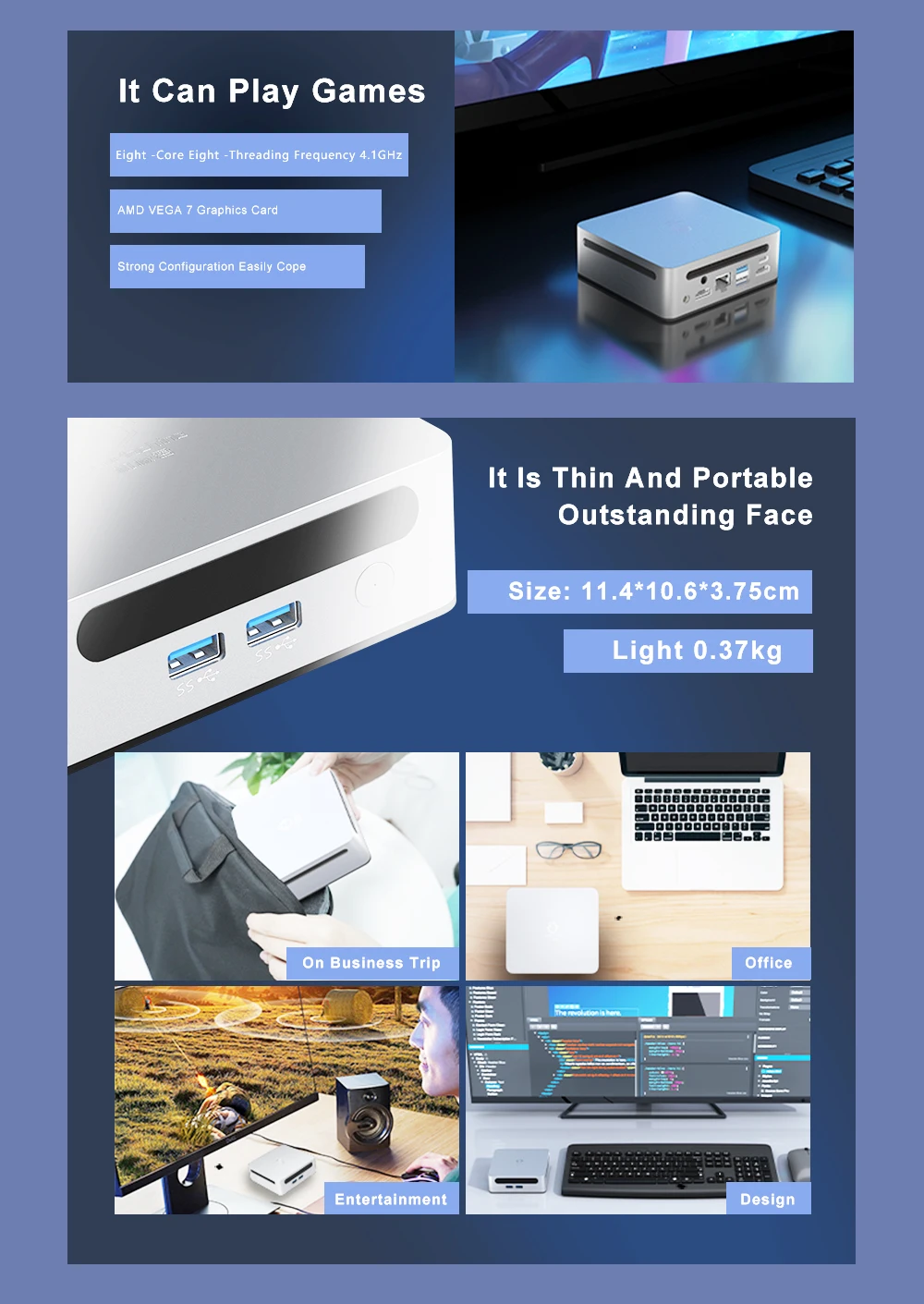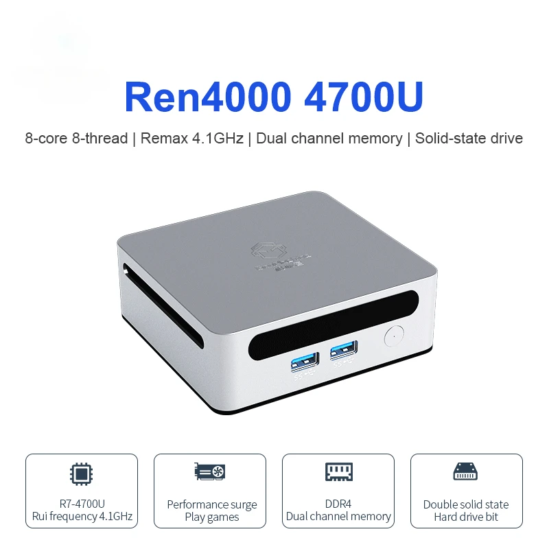 Nuevo Mini PC Ren4000 4700U AMD Ryzen7 4700U CPU 2,0 GHz hasta 4,1 GHz Windows 10/11 DDR4 64GB WiFi6 NUC PC para juegos
