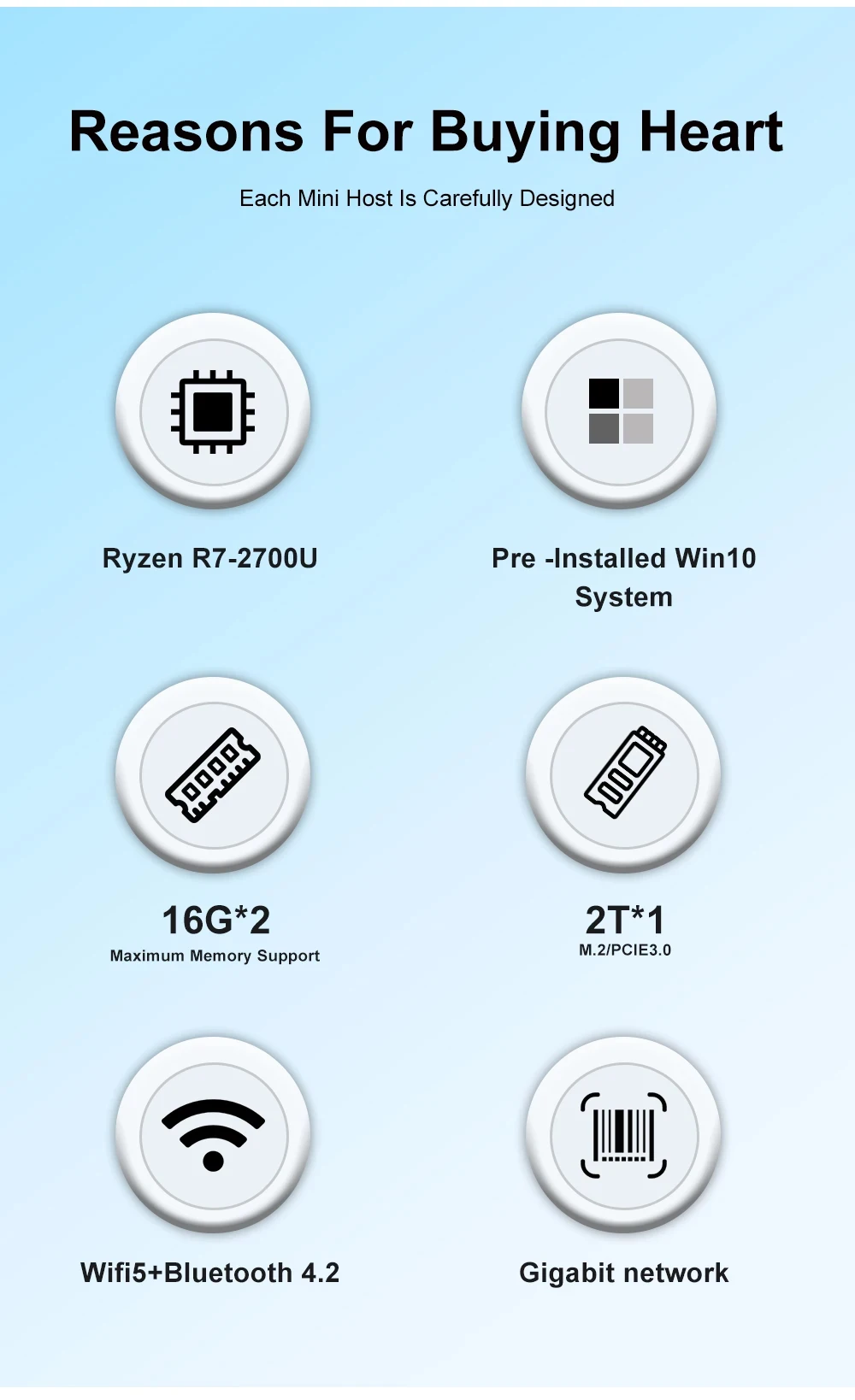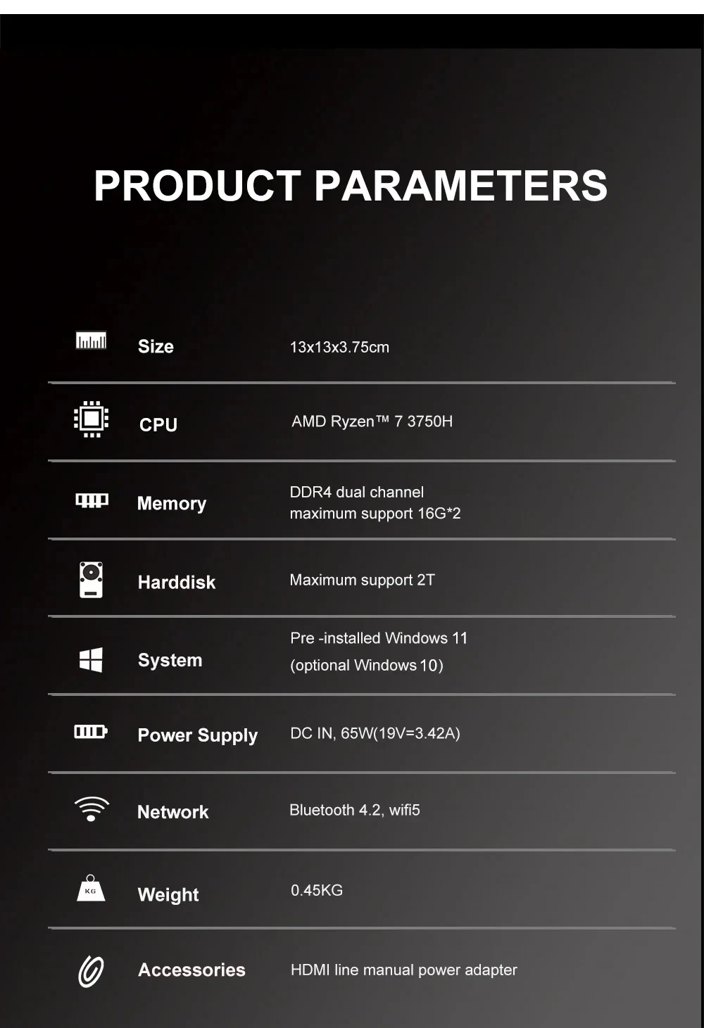 Comprar Mini PC AMD Ryzen 7 3750H 2700U R5 3550H Windows 10 Lighte Gamer ordenador DDR4 NVMe Barebone PC 4K NUC HTPC WiFi5 BT4.2