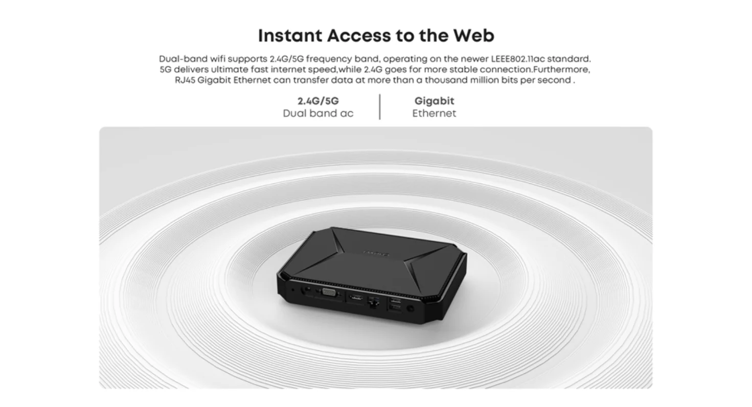 El WiFi de doble banda admite la banda de frecuencia 2,4G/5G, operando en el LEEE802 más nuevo, AC standard5G ofrece la máxima velocidad de Internet rápida, mientras que 2,4G ofrece una conexión más estable. Además. RJ45 Gigabit Ethernet puede transferir datos a más de mil millones de bits por segundo.