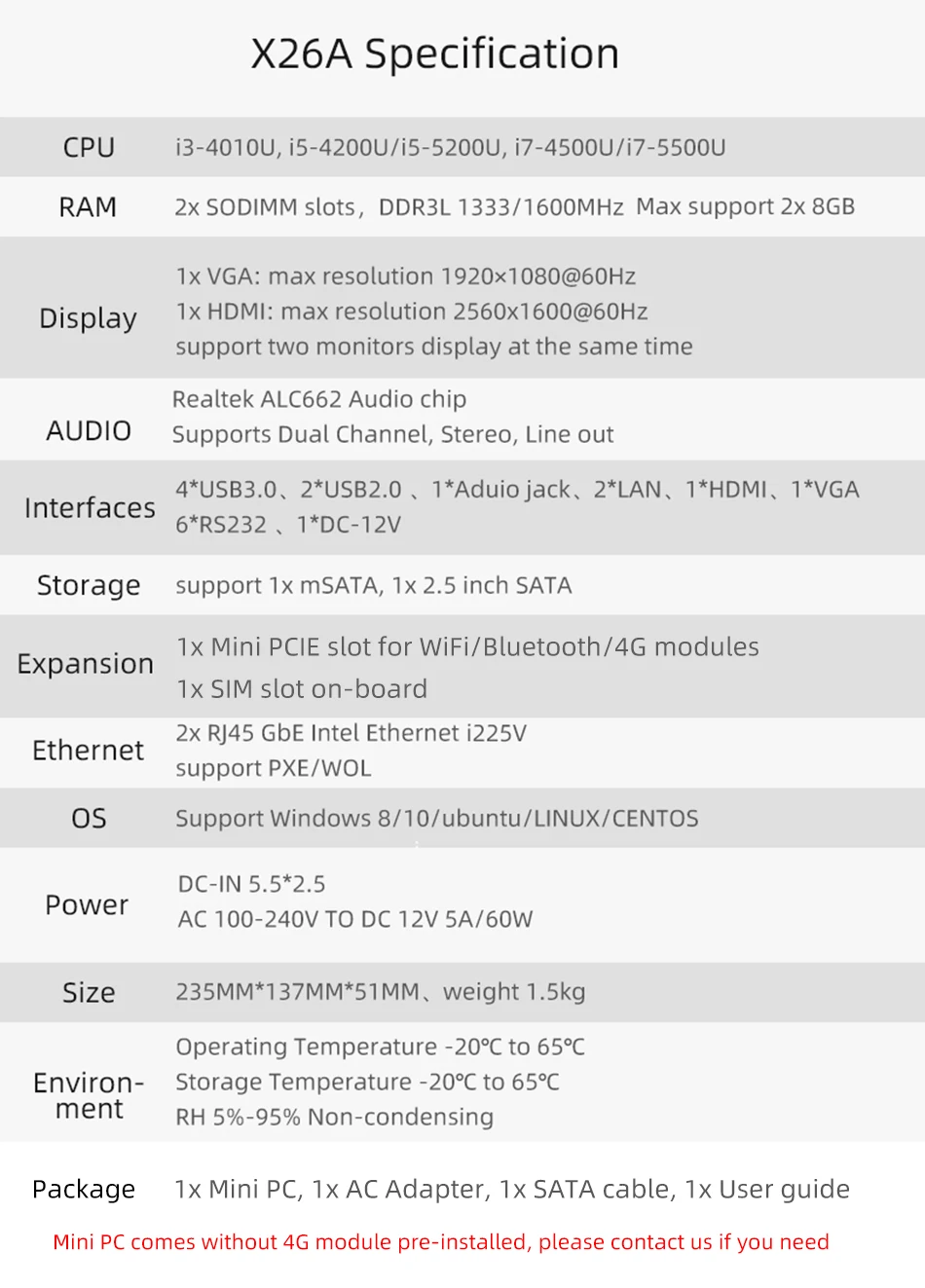 1. Compra sin RAM sin opción SSD, el mini PC viene sin WiFi y antenas preinstaladas;.2. Compre mini PC con opción de RAM y SSD, mini PC viene con WiFi y antenas preinstaladas;3. El mini PC viene sin el módulo 3G/4G LTE preinstalado, contáctenos si necesitaComprar Mini PC Industrial IoT Sin ventilador, i7-5500U, Windows, Linux, 6x, COM-RS232, 1x, RS485, ajustable, 2x2,5G, Ethernet, ranura SIM, Mini PCIe