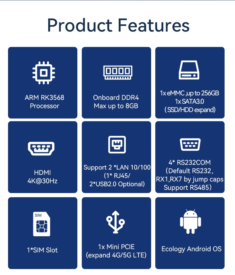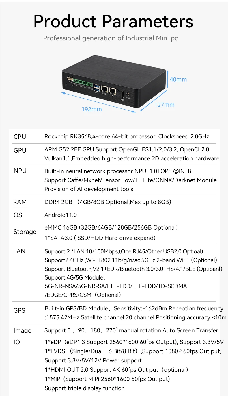 Comprar Mini PC Industrial con procesador Rockchip RK3568 ARM G52 2EE GPU compatible con Android11.0 WiFi Bluetooth3.0 SIM 2/4 USB3.0 ordenador