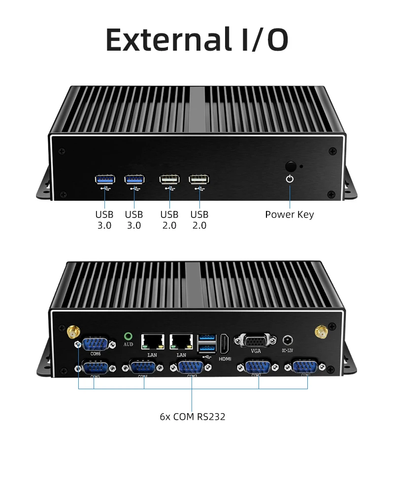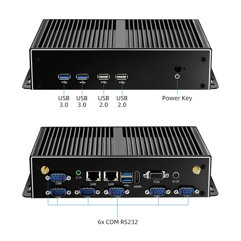 Comprar Mini PC Industrial sin ventilador 6x COM RS232 2,5G Ethernet Intel i3 i5 i7 4th/5th Gen CPU WiFi 4G LTE ranura SIM Windows Linux