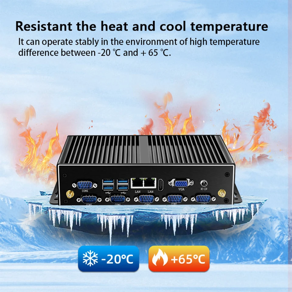 Helor Fanless Industrial Mini PC Dual NIC LAN 6 * COM RS232 RS485 Core i7 5500U i5 4200U J1900 Win10/11 Ubuntu Linx Thunderbdt Gaming Computer.