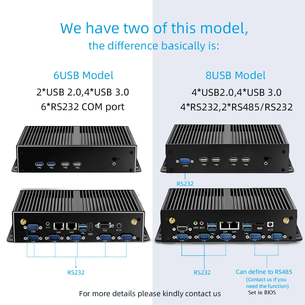 Versión 8USB: COM1 COM2 se puede configurarRS485En BIOS(Solo la versión 8USB admite esta función)