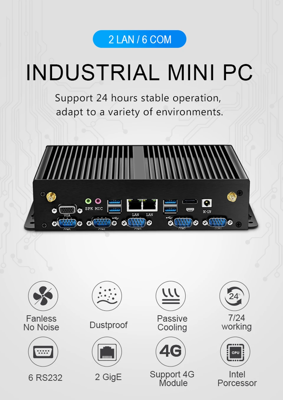 ● 6 puertos COM, tipo RS232 4x, soporte COM5 COM6 conjunto a RS485 a bordo (versión 8USB).