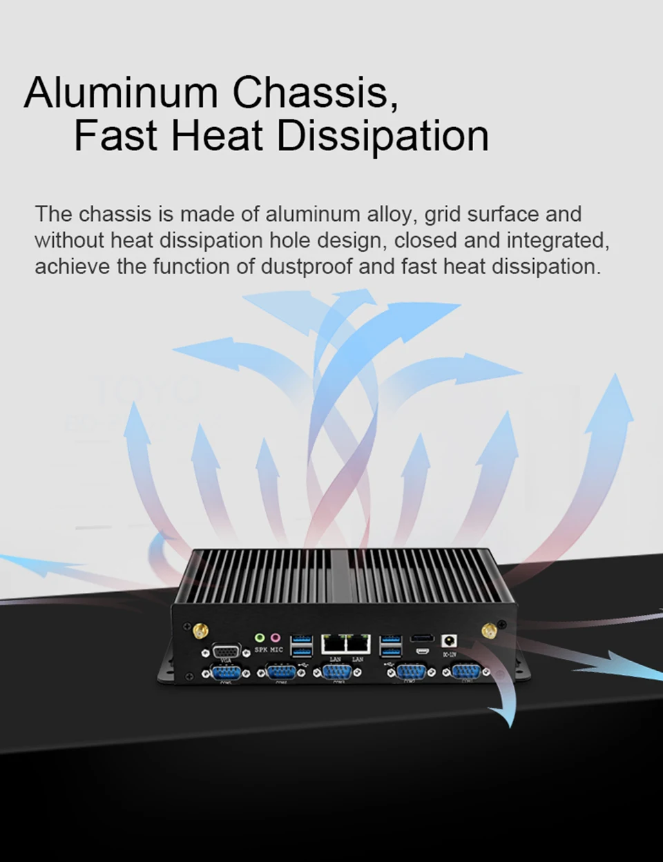 ● Sin ventilador para disipación de calor. Cero ruido, soporta 7x24 horas de funcionamiento