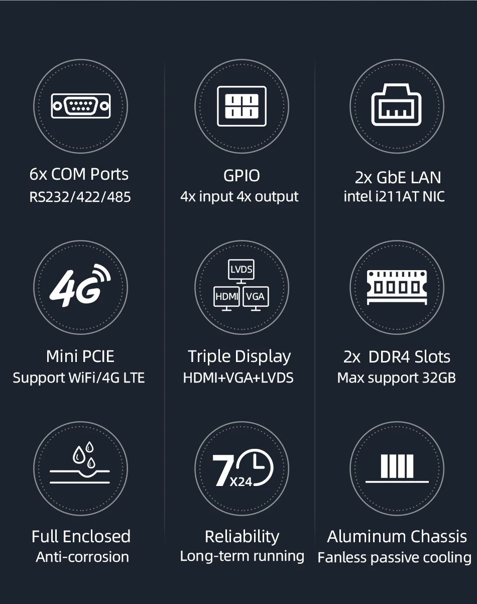 Comprar Mini PC Industrial sin ventilador Inte Core i5 8250U i7 8550U 6xRS232/422/485 8xUSB 2xEthernet GPIO ranura SIM 4G LTE WiFi Windows 10
