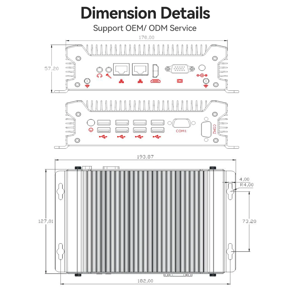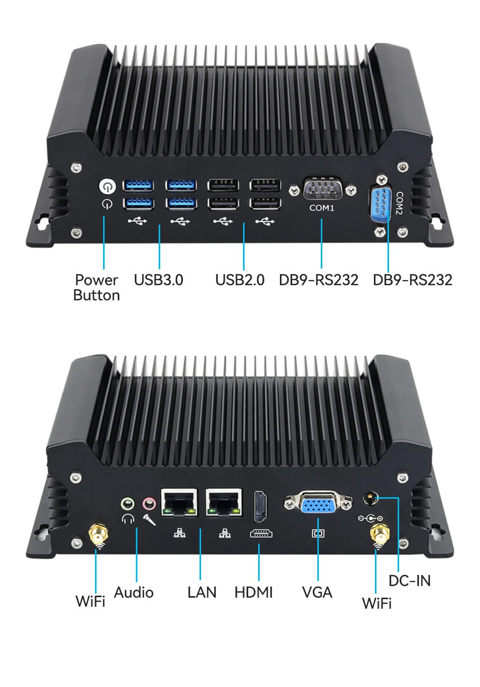 Comprar Mini PC Industrial sin ventilador, Intel Core i7-10610U, 2x Gigabit LAN 2x COM RS232 8x, soporte USB, WiFi 4G LTE, Windows Linux