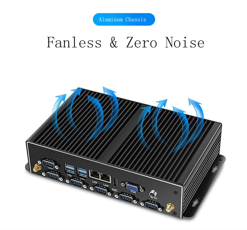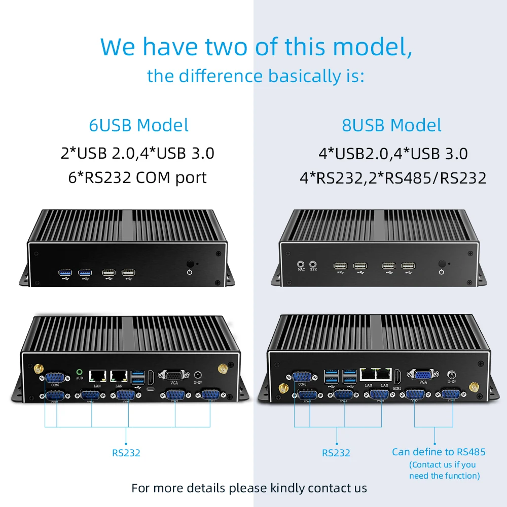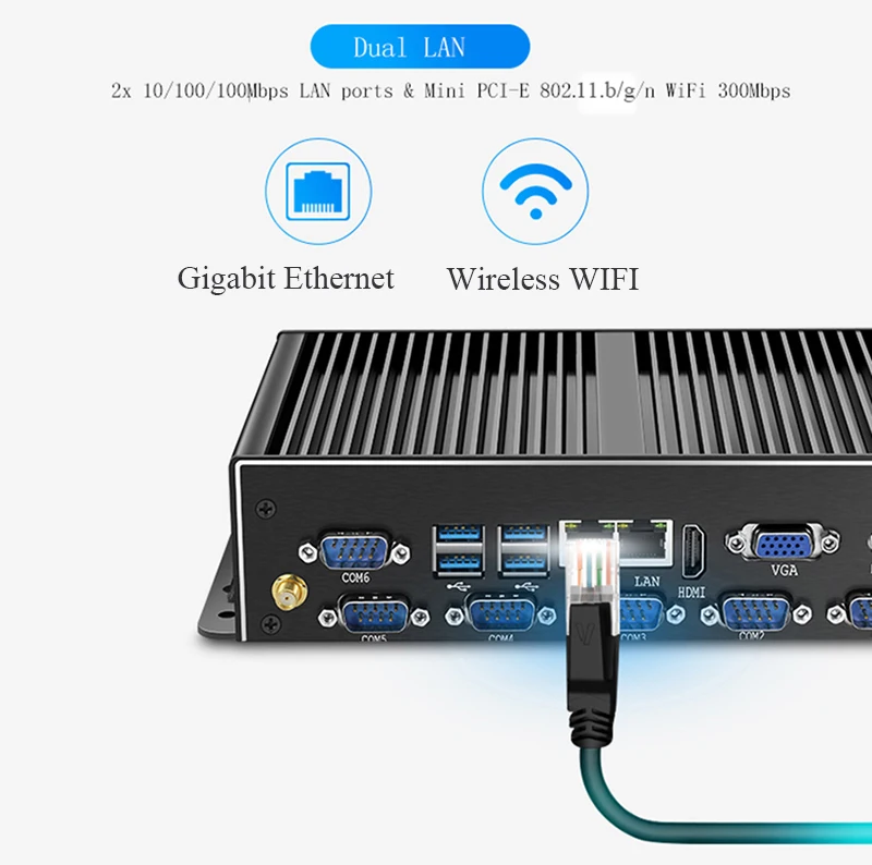 BEBEPC Mini PC Industrial Núcleo sin ventilador i5-4200U Celeron J1900 2955U HD WiFi 6 * RS232 RS485 Windows 10 Ubuntu Computadora Dual LAN 6 * COM i7-4500U 5500U